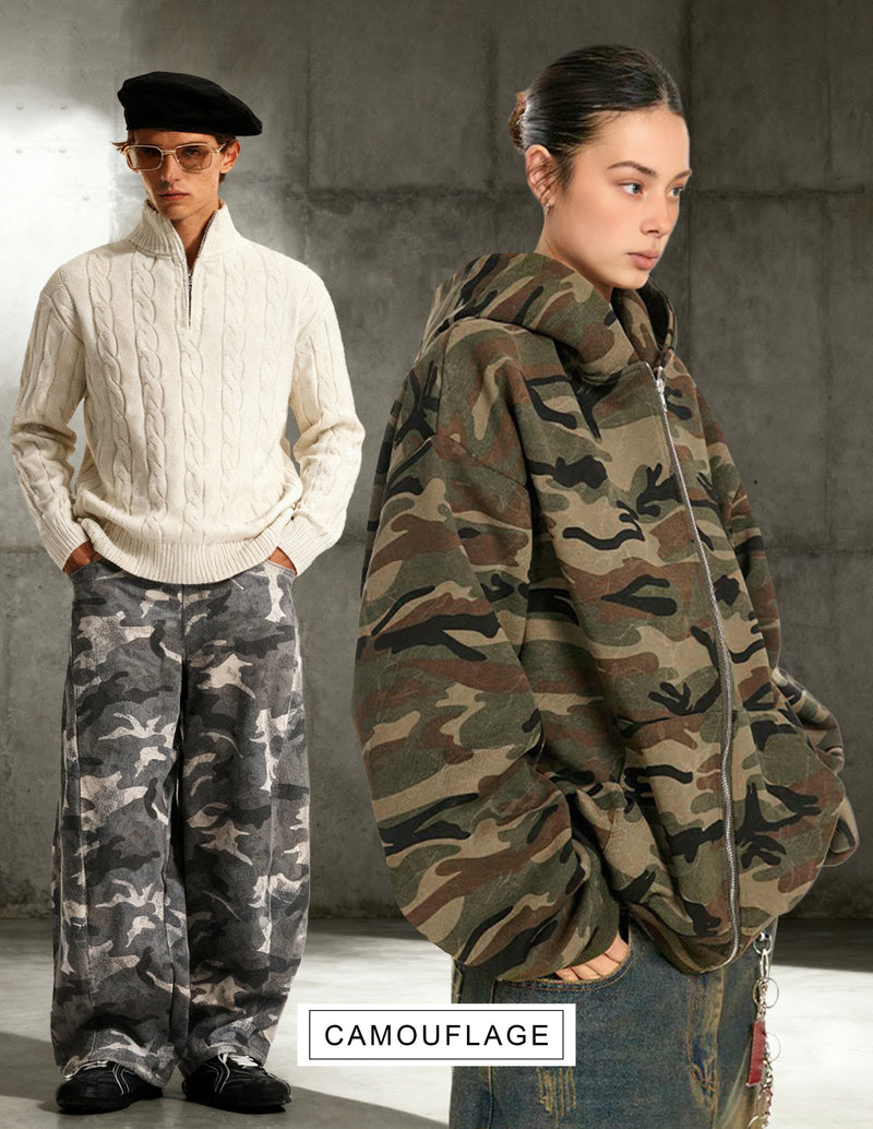 BAKYARDER Y2K High Street Loose Camouflage Drawstring Cargo Pants Baggy Camouflage Cargo Pants