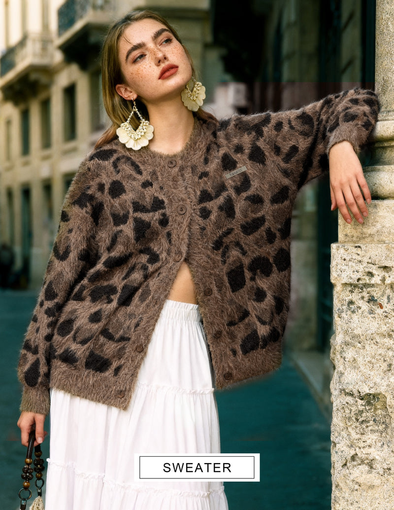 BAKYARDER Vintage Leopard Jacquard Cardigan Sweater