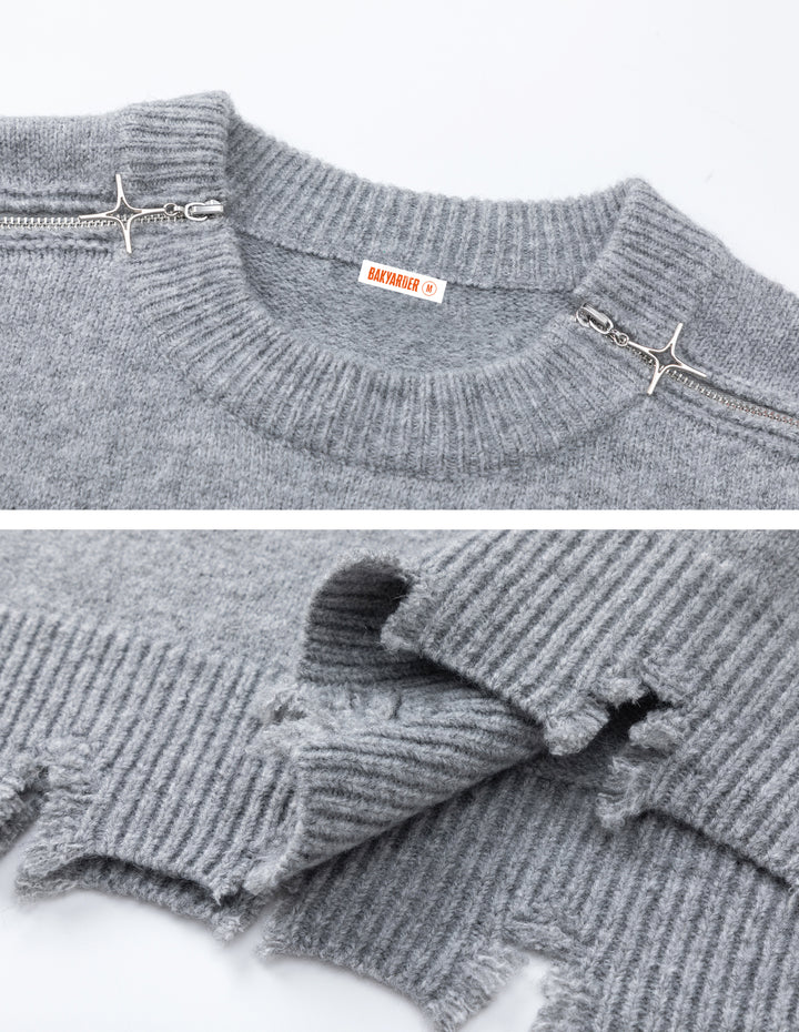 BAKYARDER Minimalistischer, einfarbiger Pullover im Used-Look