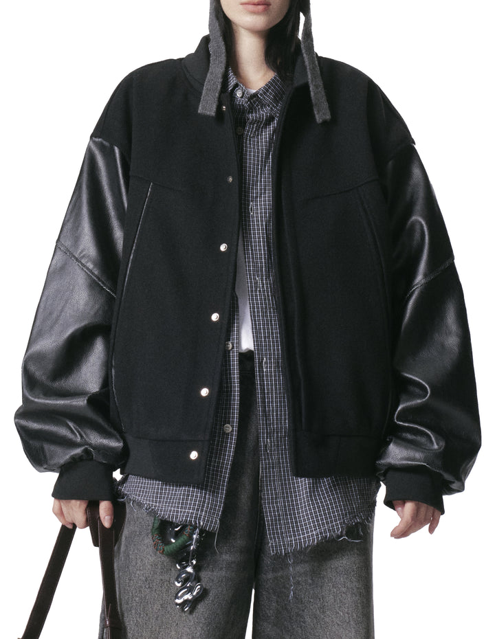 BAKYARDER Vintage Deconstructed Patchwork PU Leder Baseballjacke