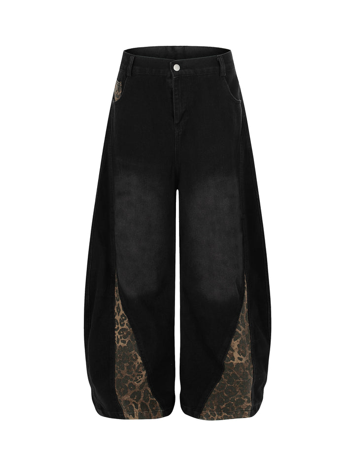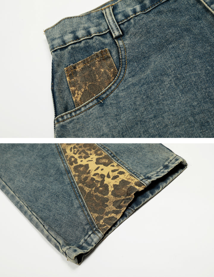 BAKYARDER Vintage-Patchwork-Fassjeans mit Leopardenmuster