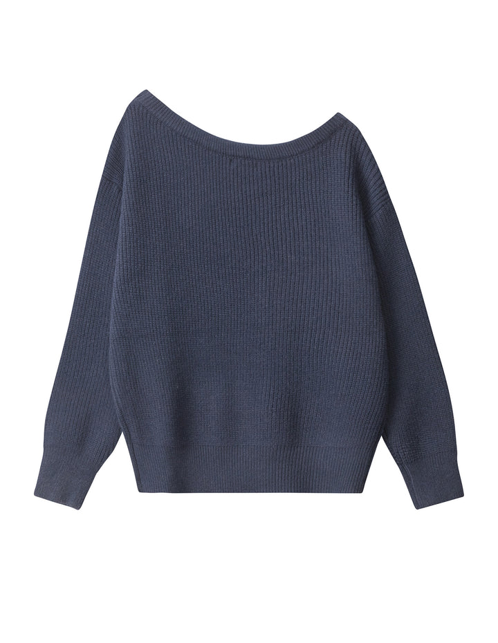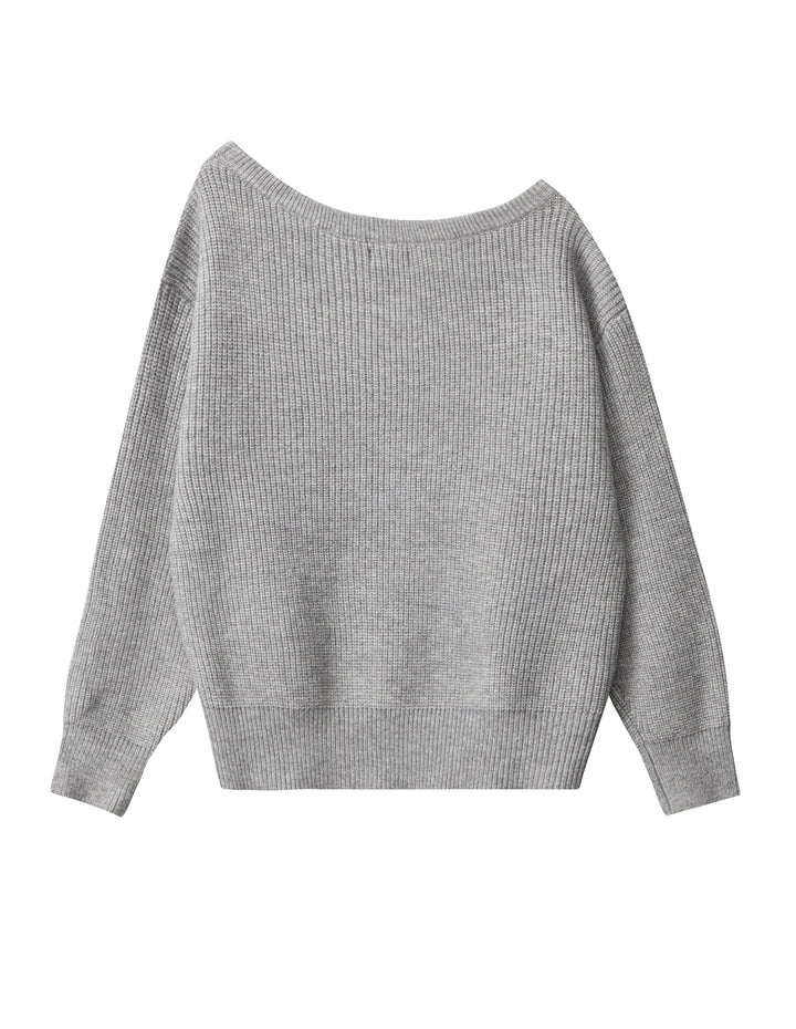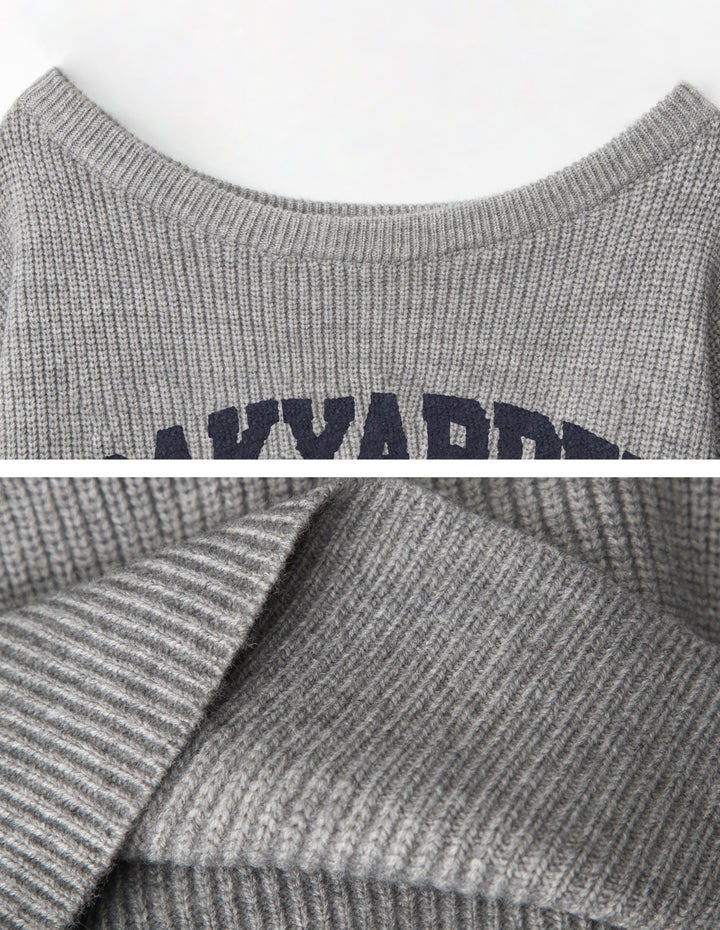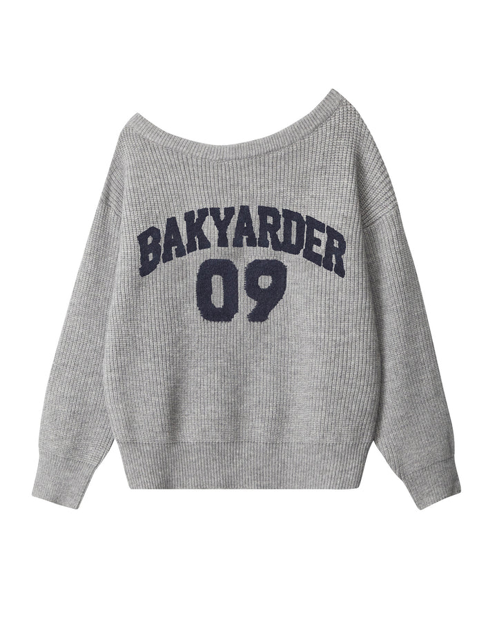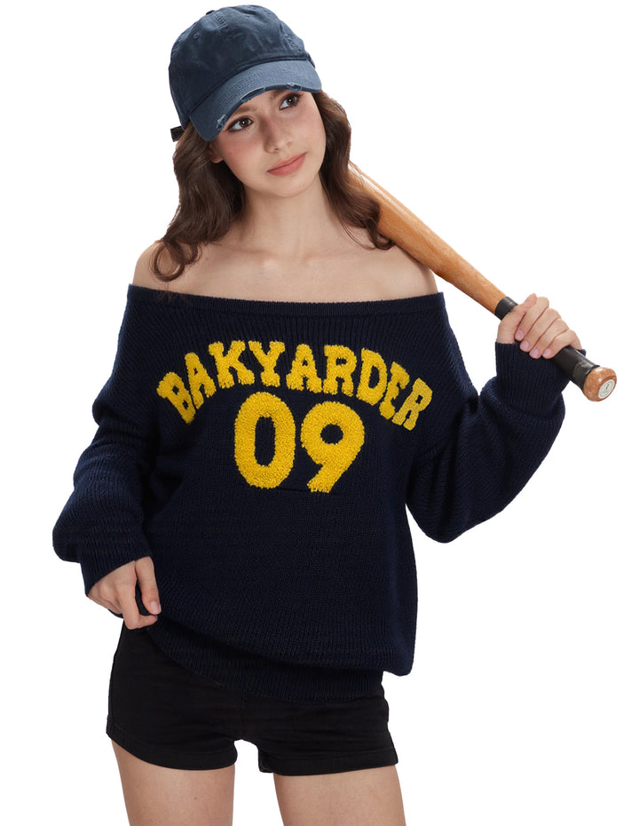 BAKYARDER Letter Chenille Embroidery Off-Shoulder Sweater