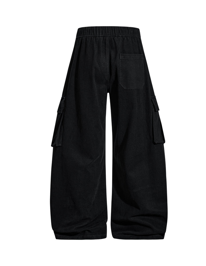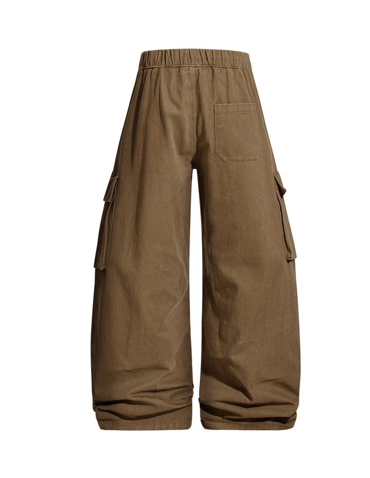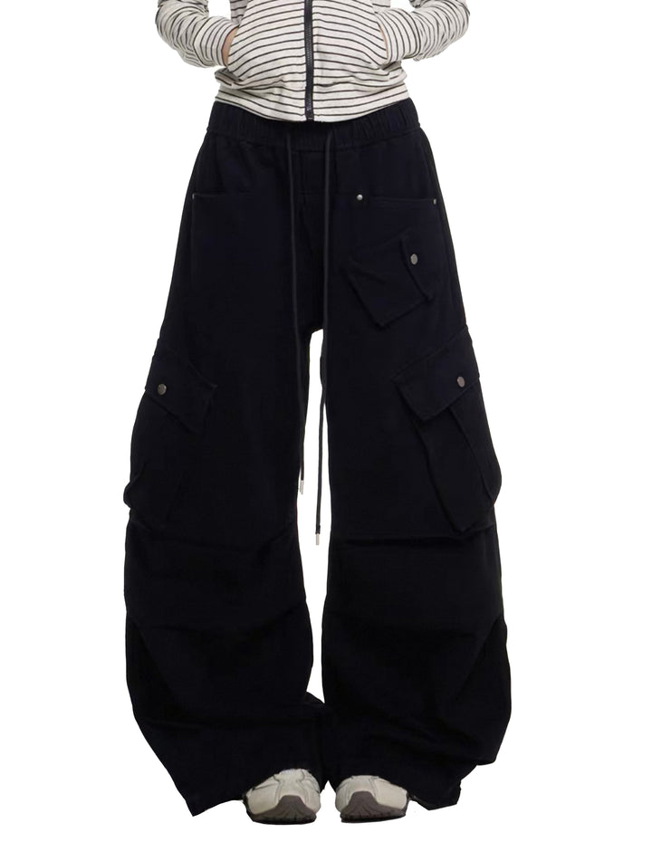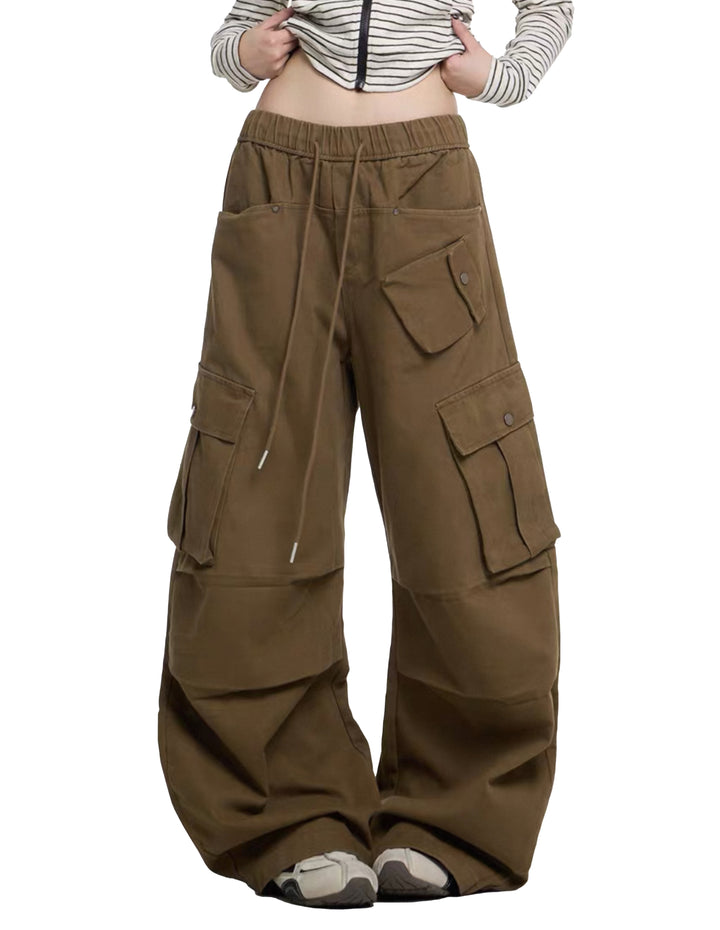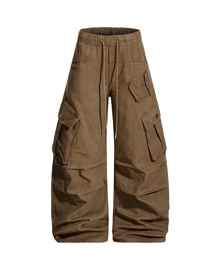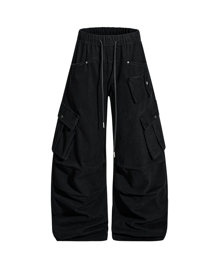 BAKYARDER Vintage Drawstring Pleated Multi-Pocket Barrel Cargo Pants