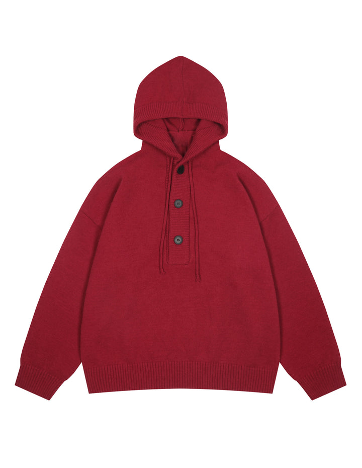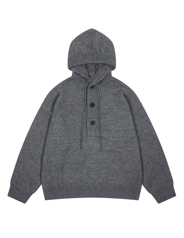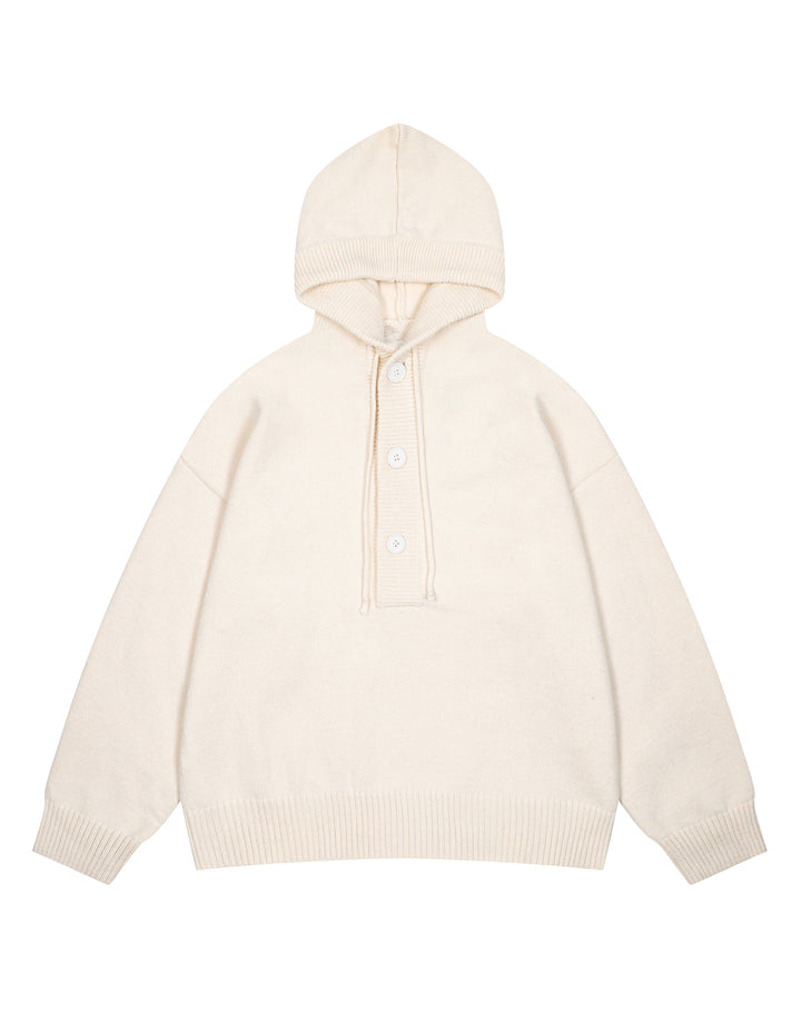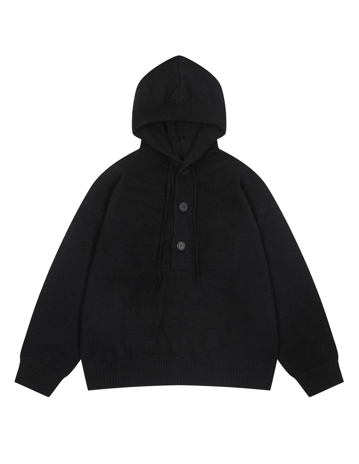 BAKYARDER Button Hoodies Oversized Solid Color Hooded Sweater Long Sleeve Casual Pullover Sweaters Tops
