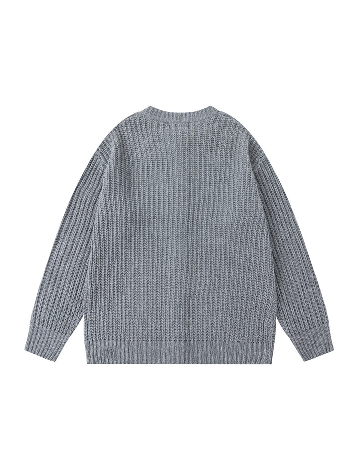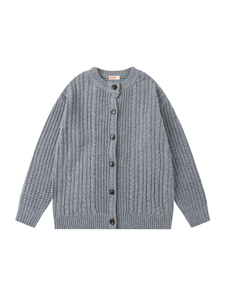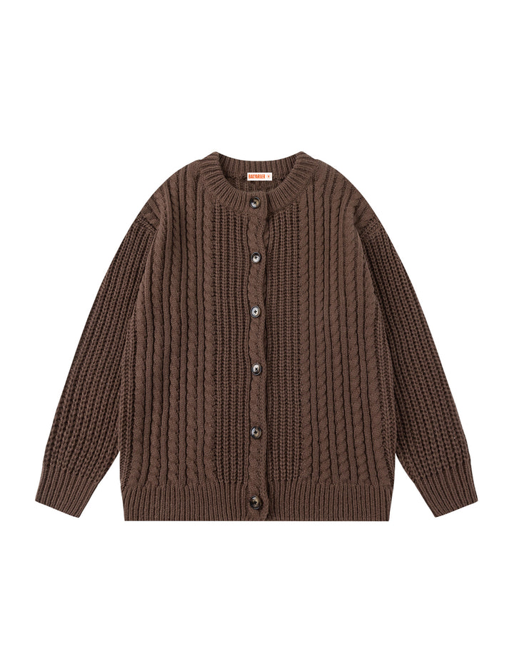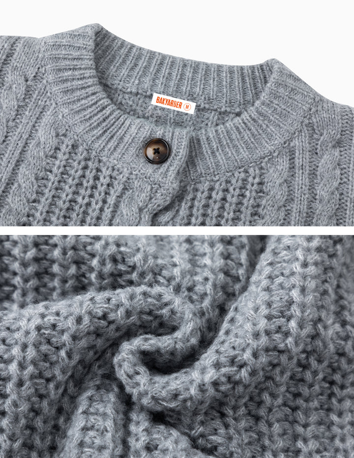 BAKYARDER Cable Knit Crewneck Cardigan Sweater