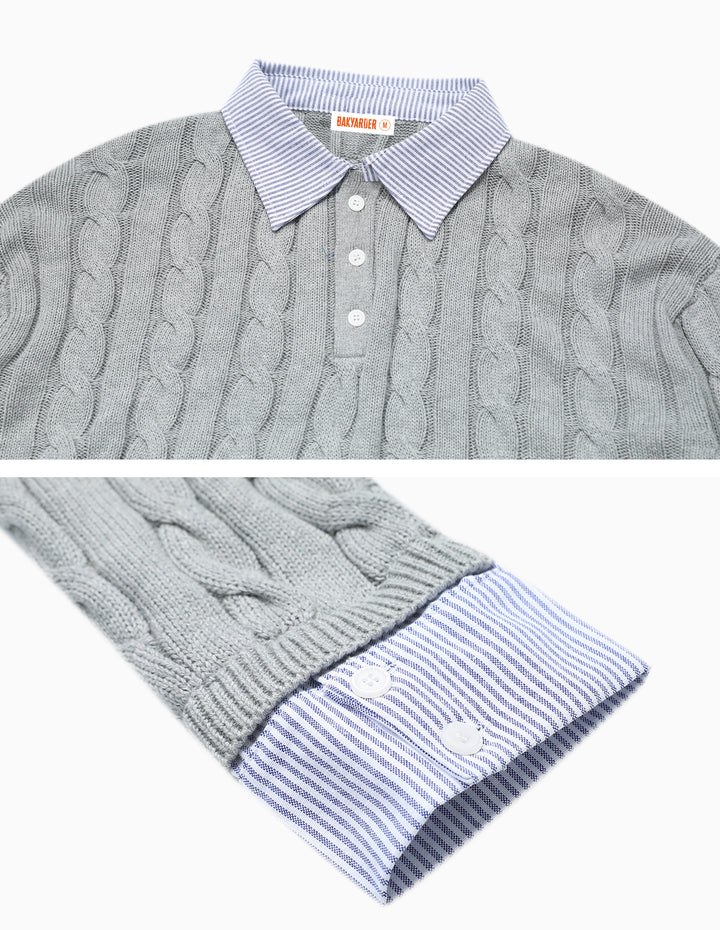 BAKYARDER Cable Knit Layered-Look Pullover Sweater