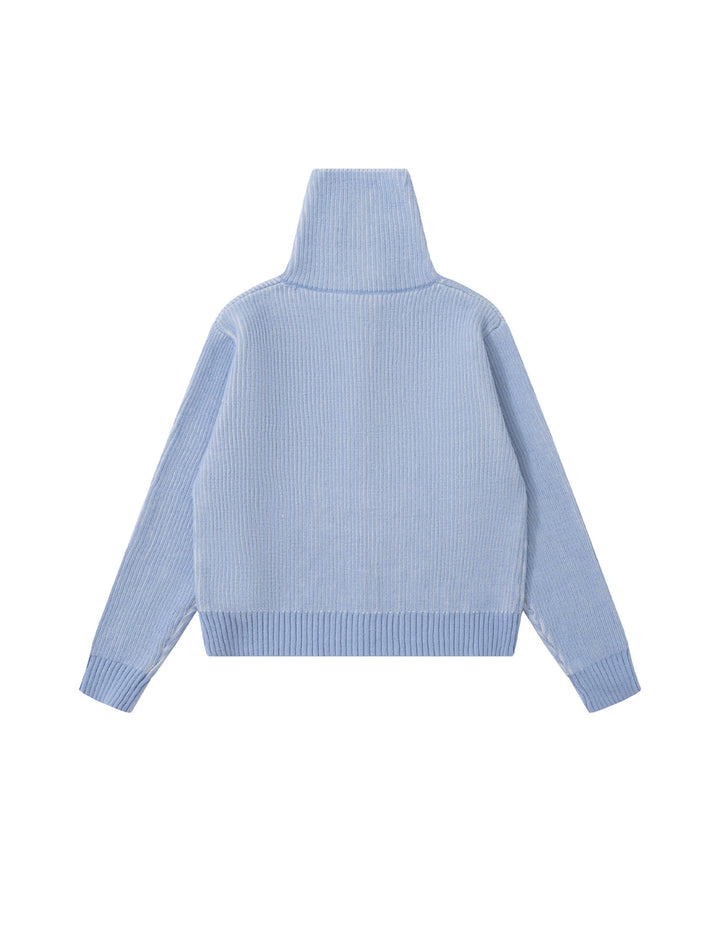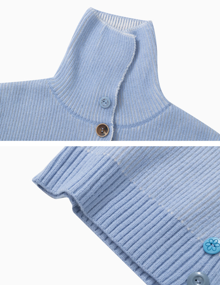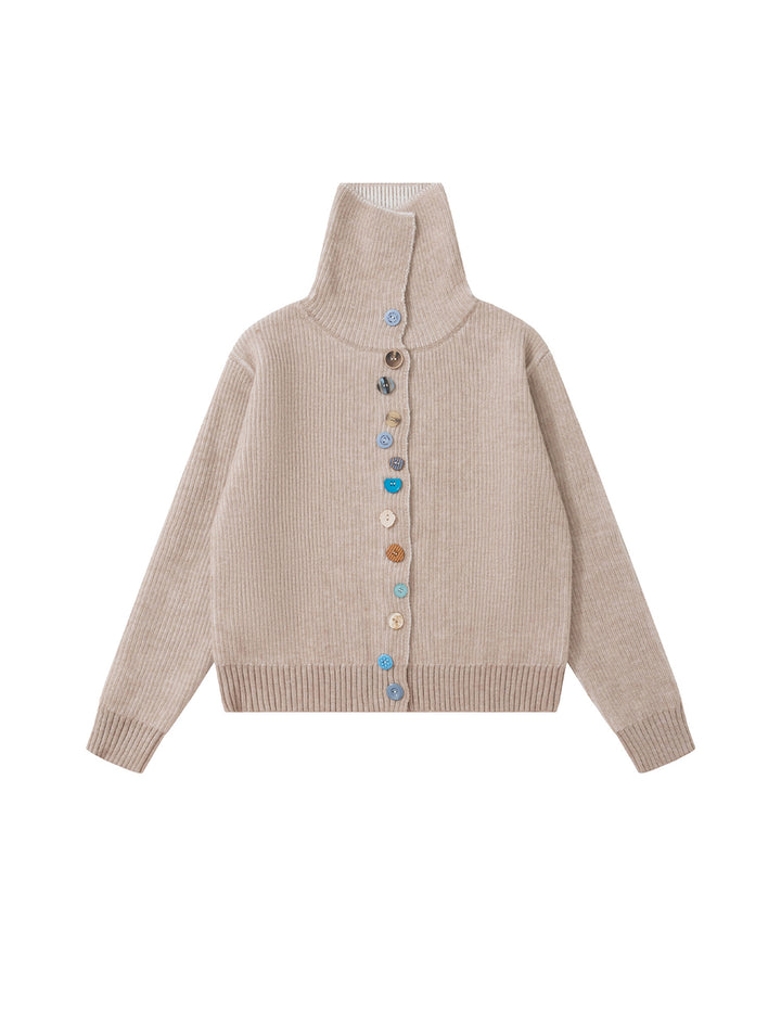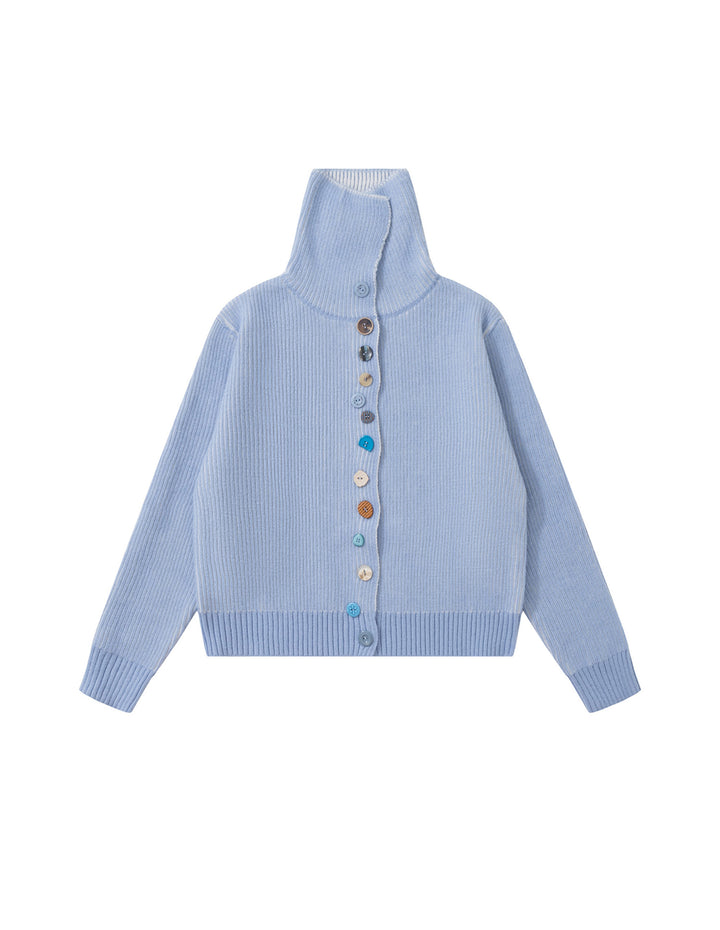 BAKYARDER Colorful Asymmetrical Button Turtleneck Cardigan Sweater