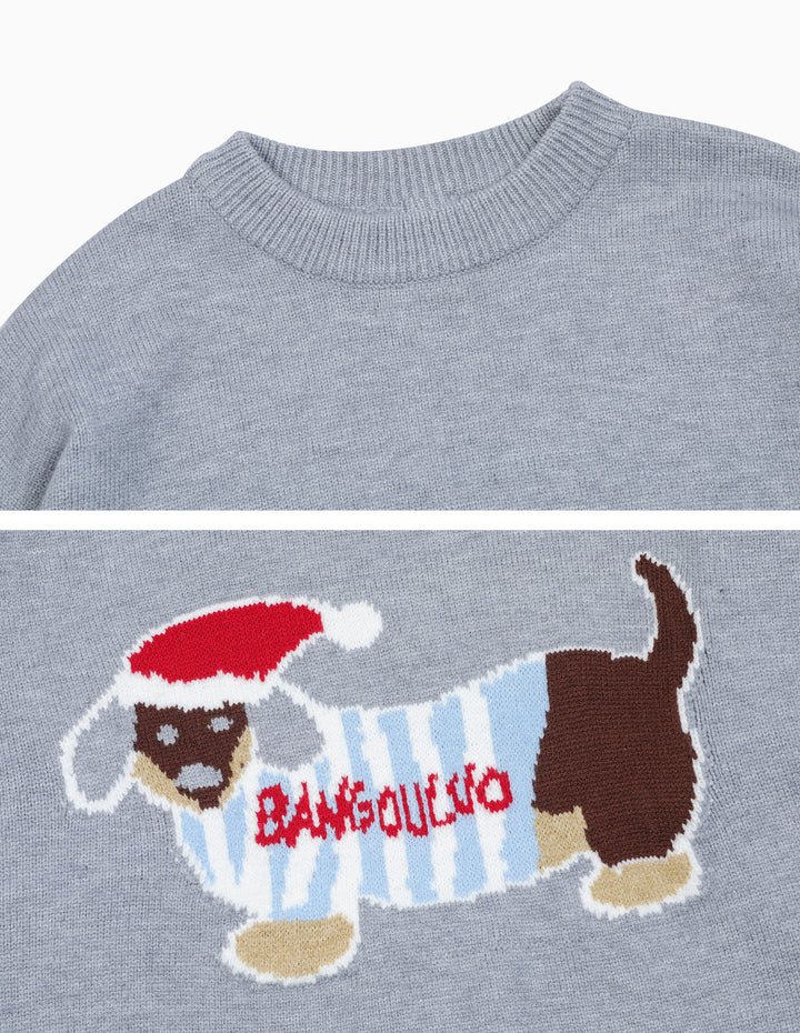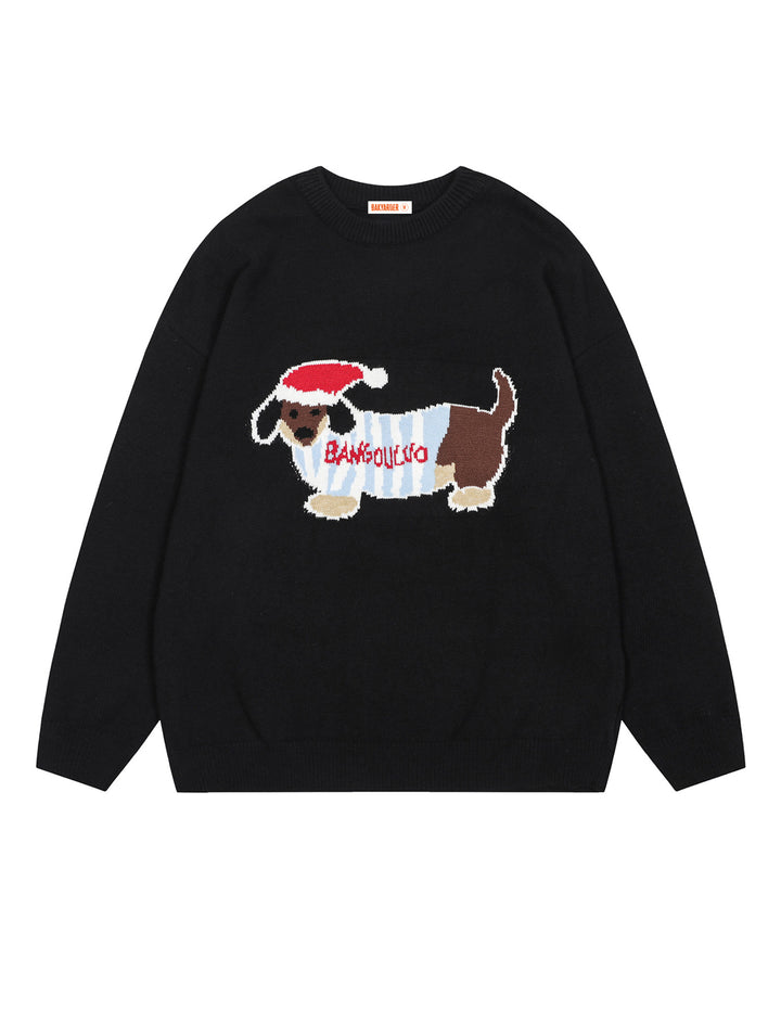 BAKYARDER Dachshund Jacquard Crew Neck Sweater