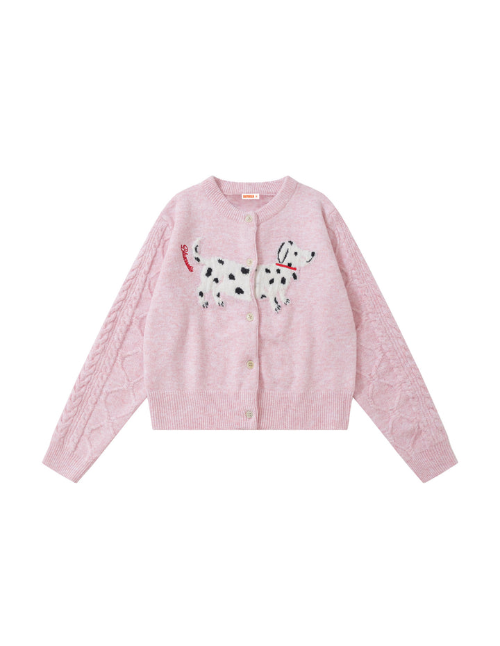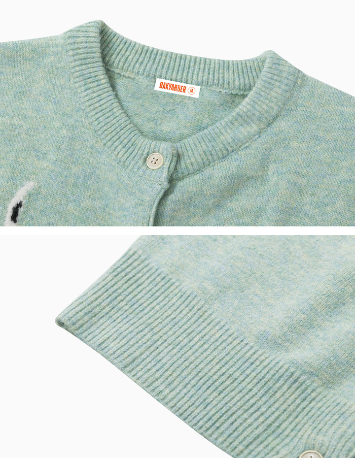 BAKYARDER Dalmatian Jacquard Crewneck Cropped Cardigan Sweater