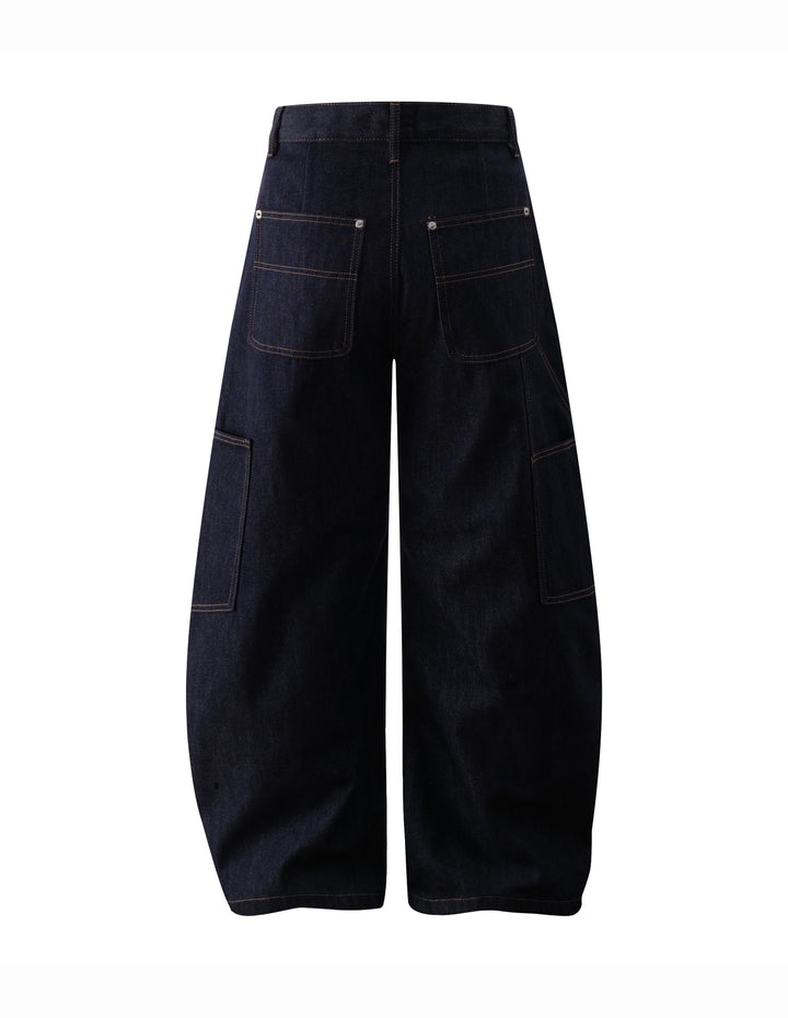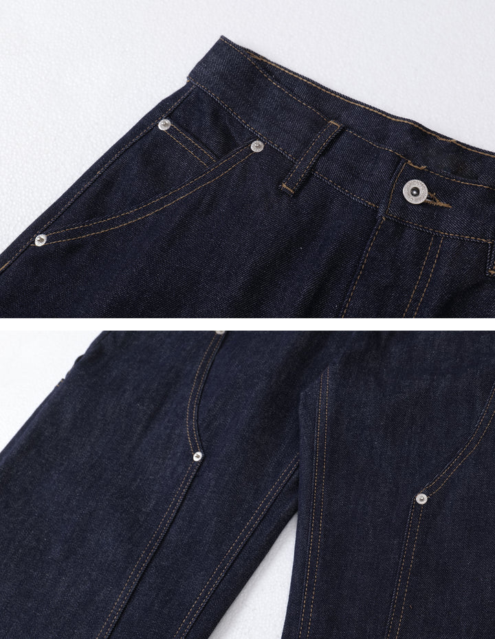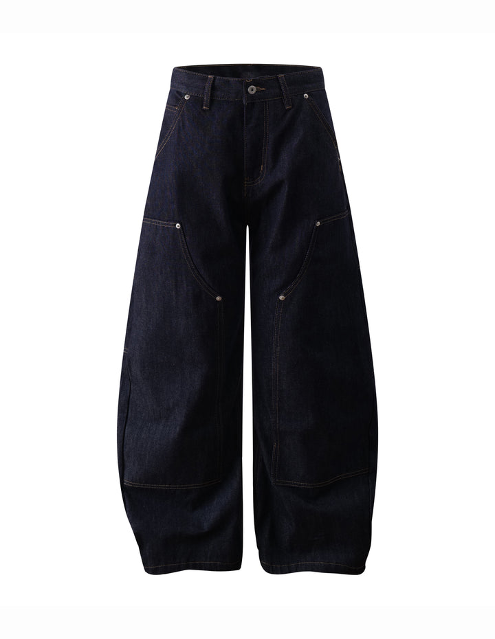 BAKYARDER High-Street Contrast-Stitch Rivet Barrel-Leg Jeans
