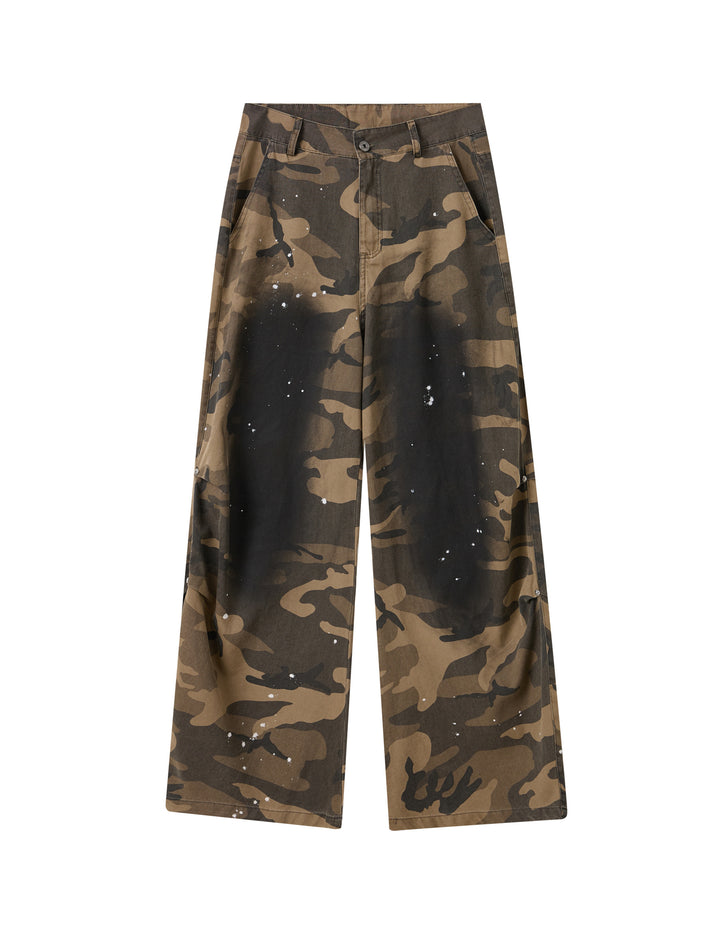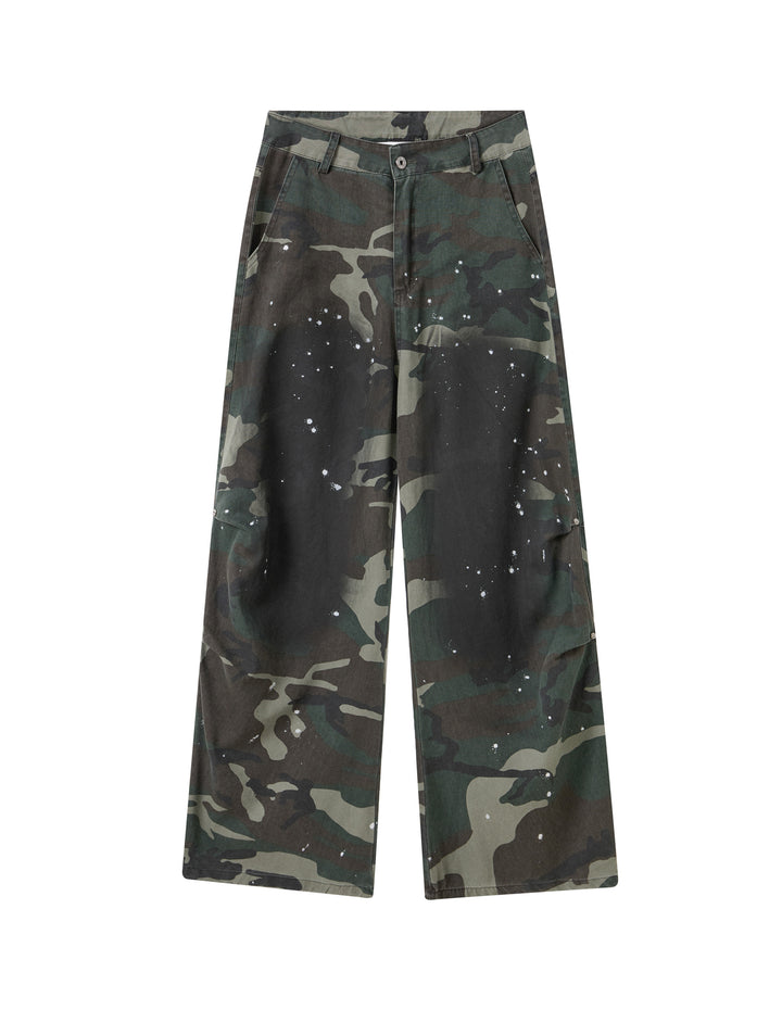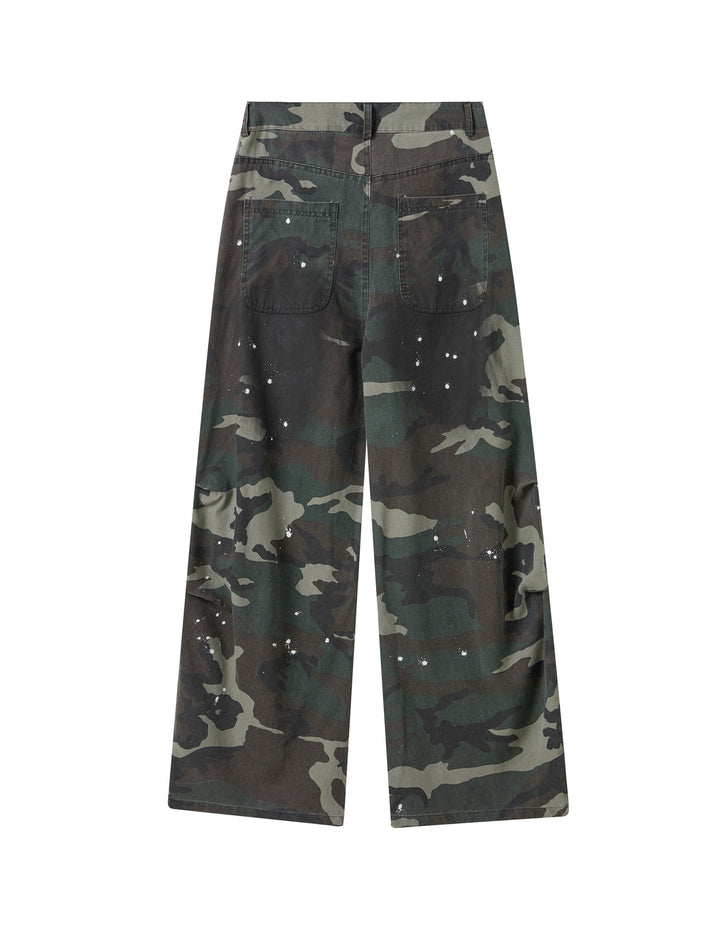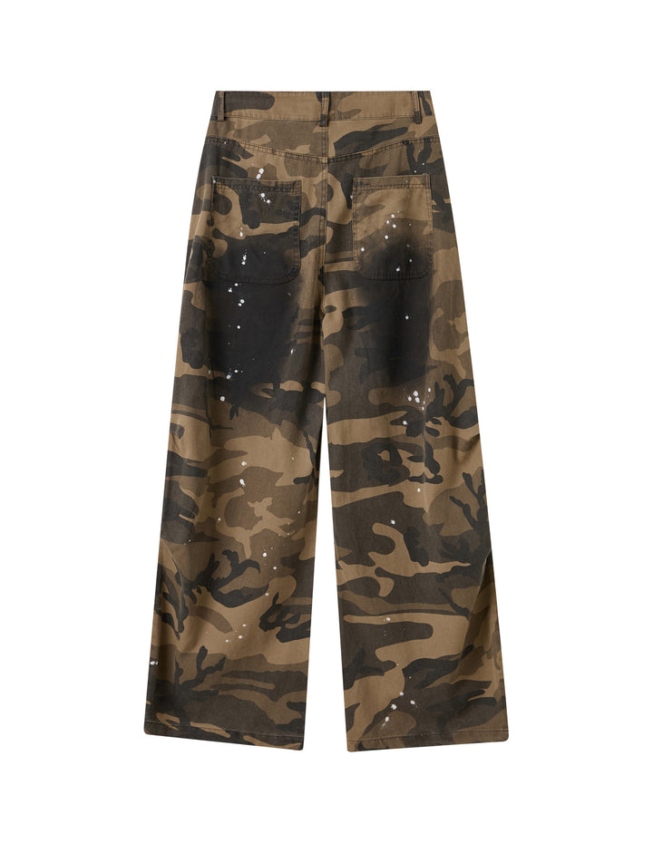 BAKYARDER Paint-Splatter Camouflage Wide-Leg Cargo Pants