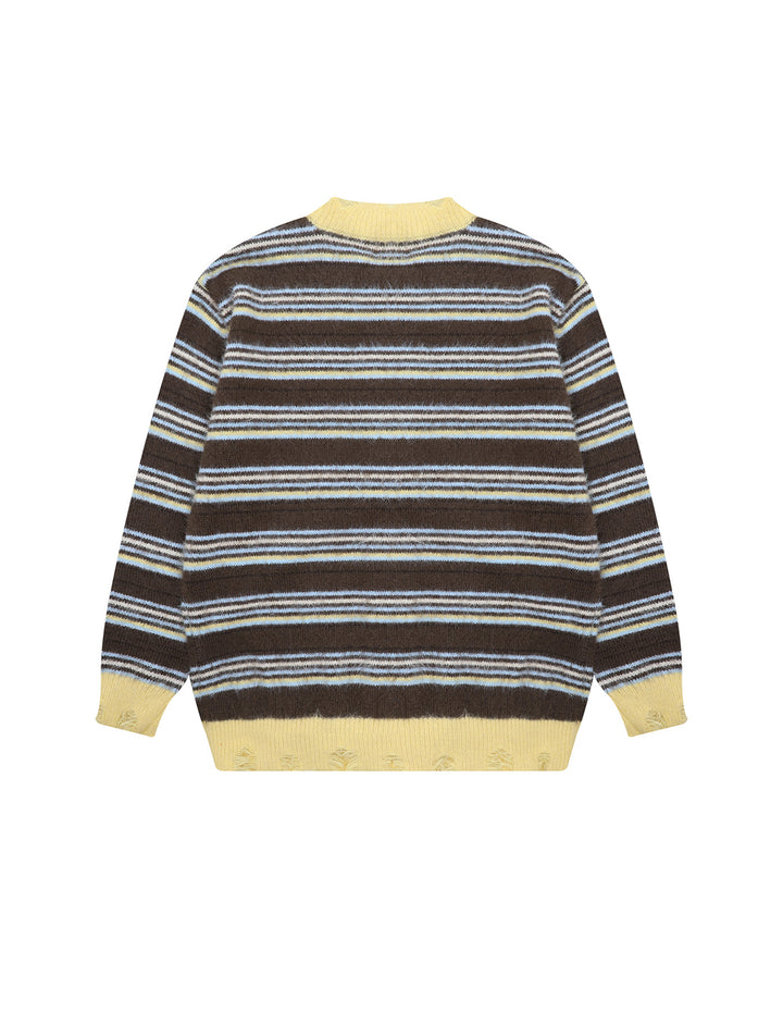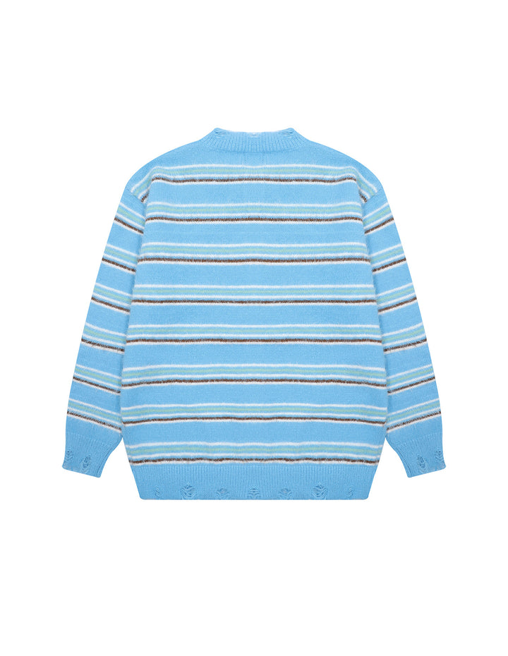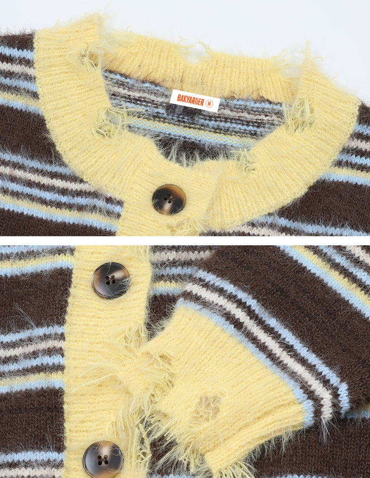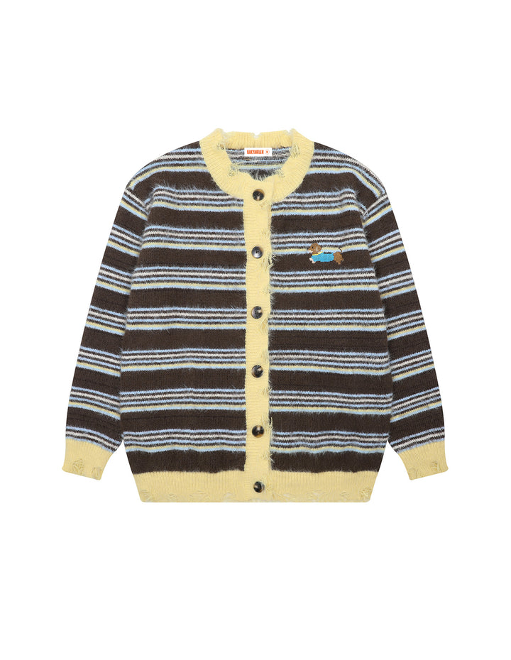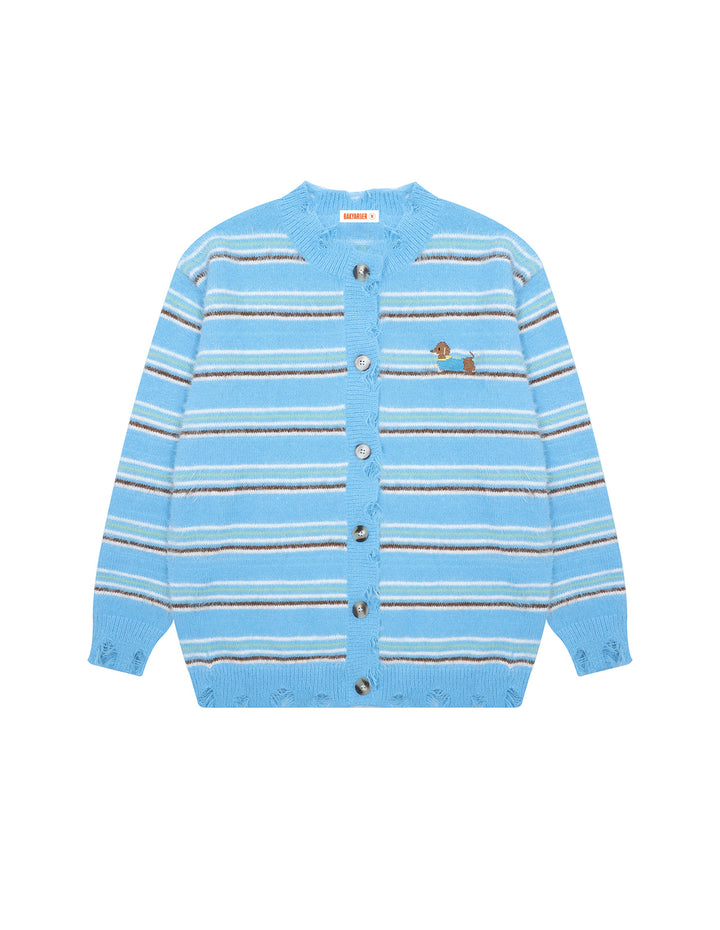BAKYARDER Playful Dog Embroidered Striped Cardigan Sweater