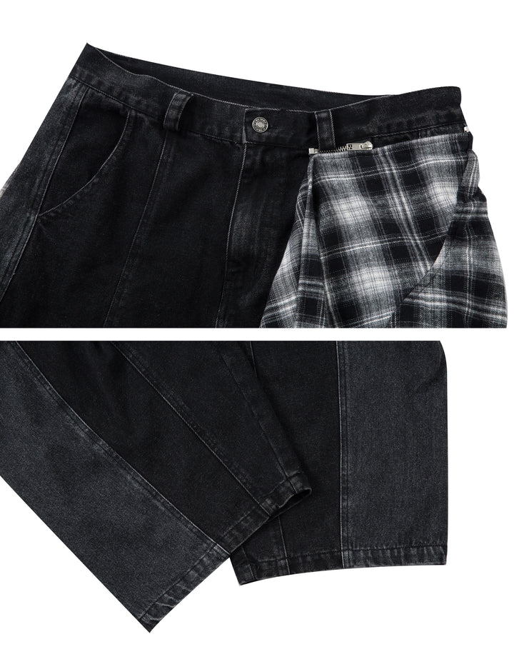 A unique barrel jean with removable plaid panels for versatile styling. Vintage-inspired and relaxed fit—perfect for switching up your streetwear game.