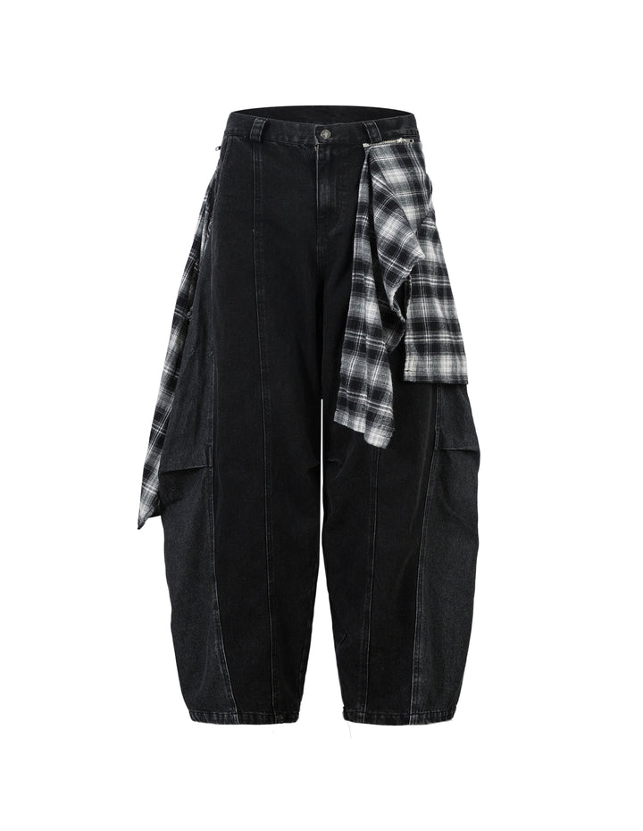 BAKYARDER Removable Plaid Barrel Jean
