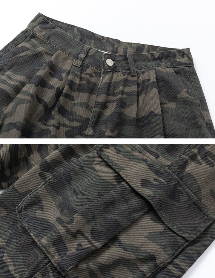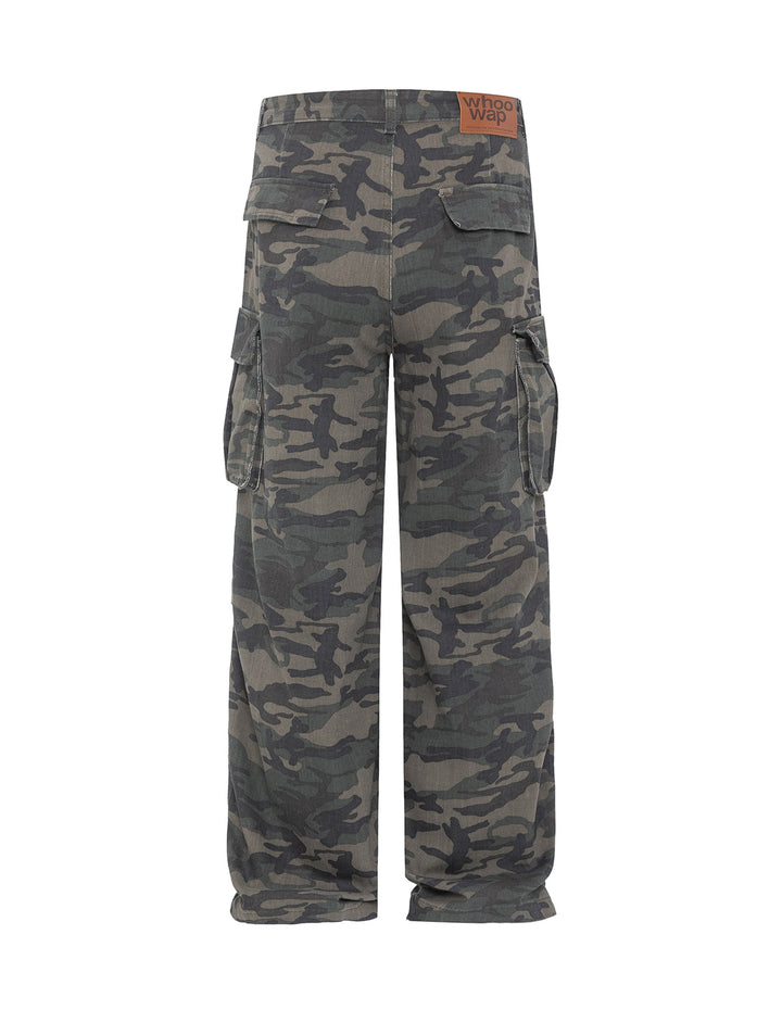 BAKYARDER Retro Distressed Multi-Pocket Camouflage Cargo Pants