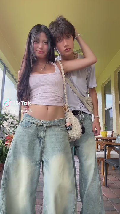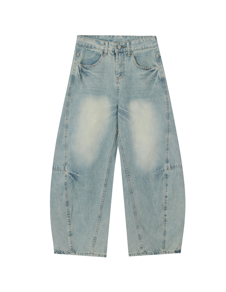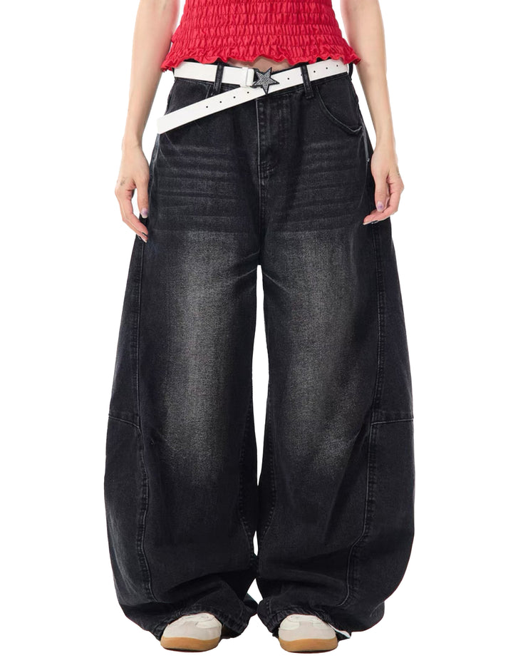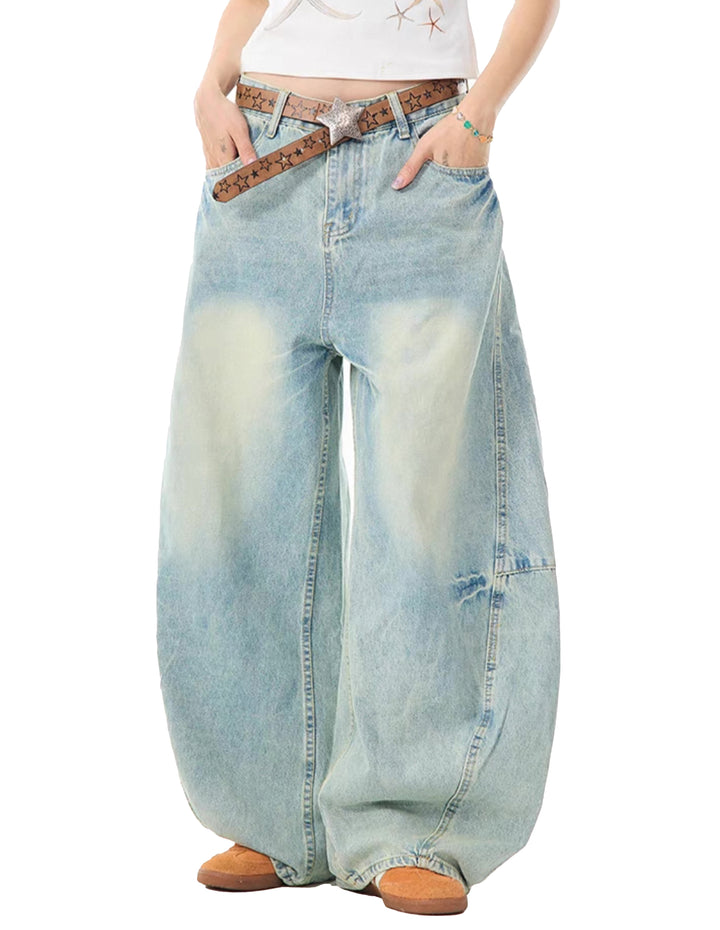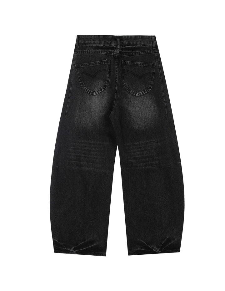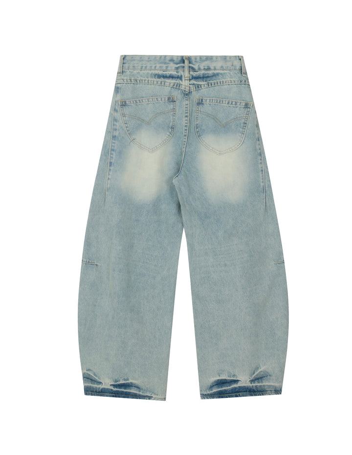 BAKYARDER Retro Distressed Wide-Leg Barrel Jeans