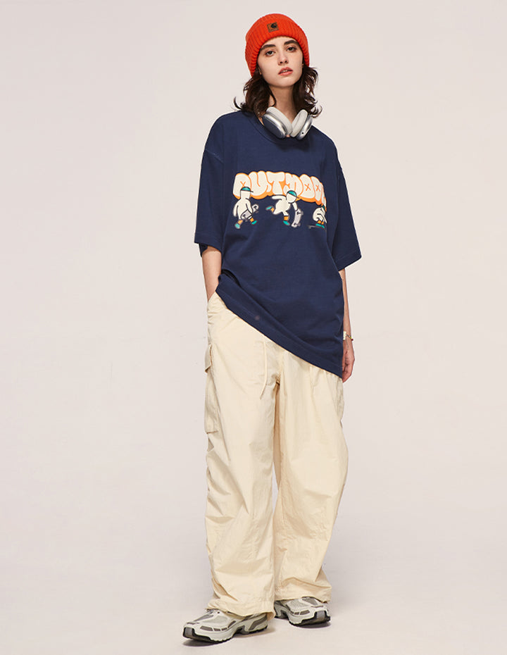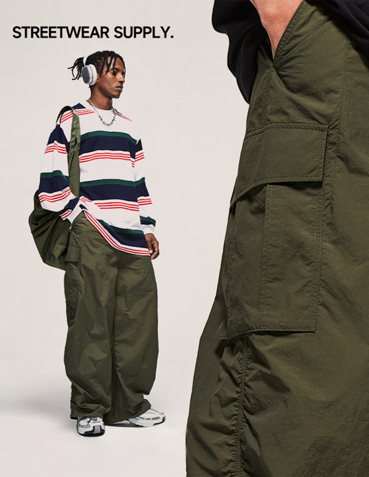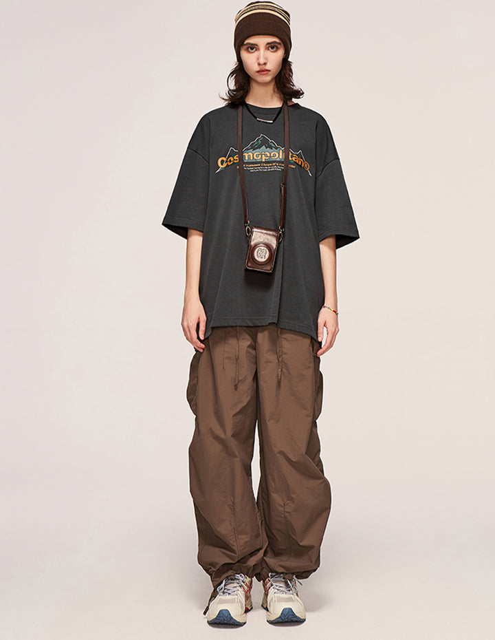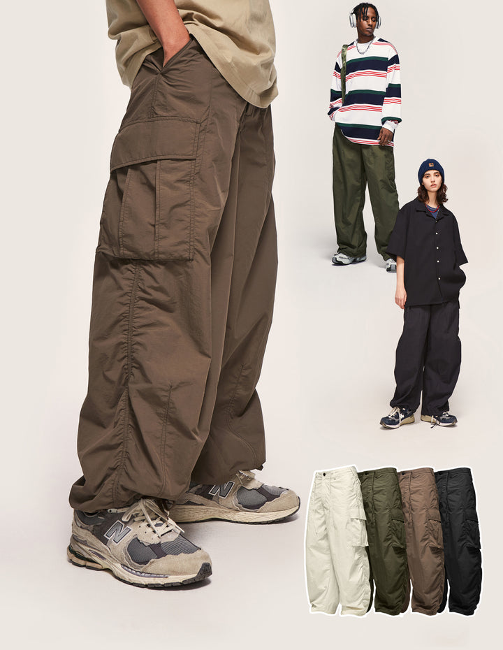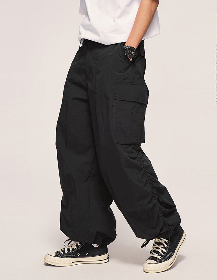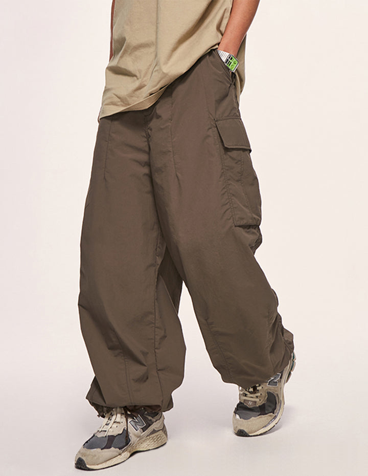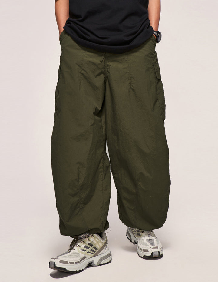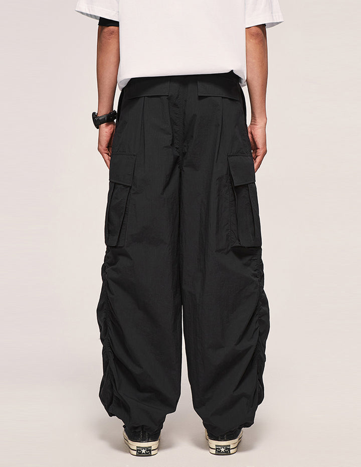 BAKYARDER Slim Checkered Loose Cargo Wide-Leg Pants