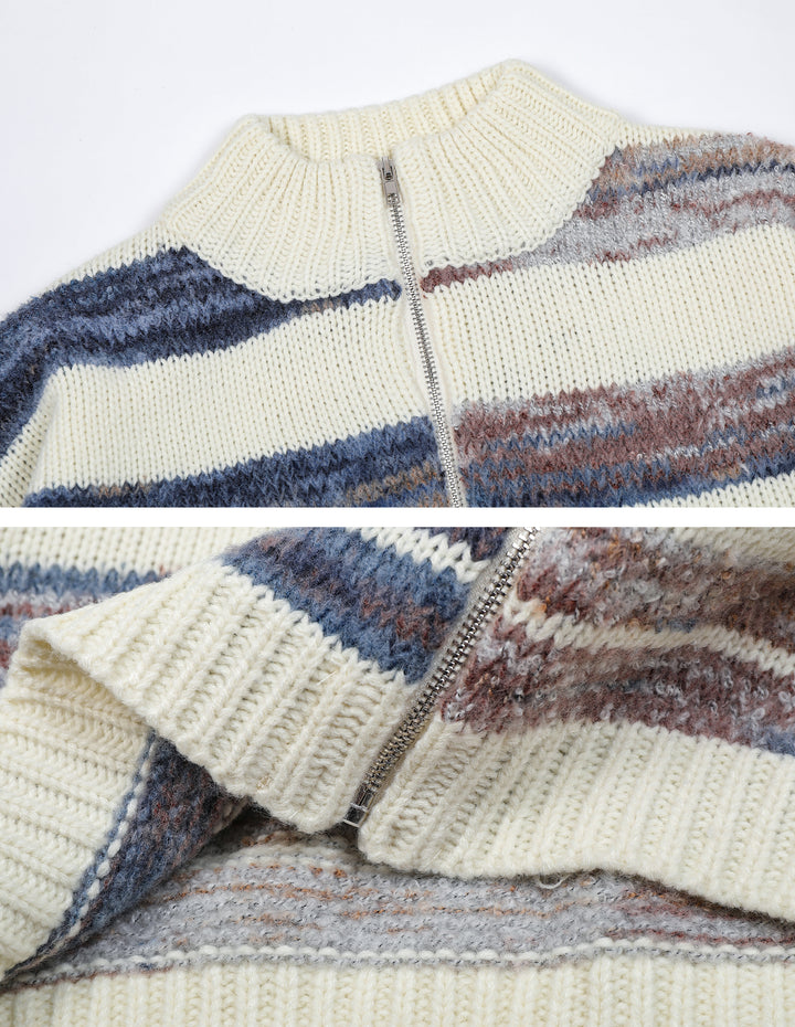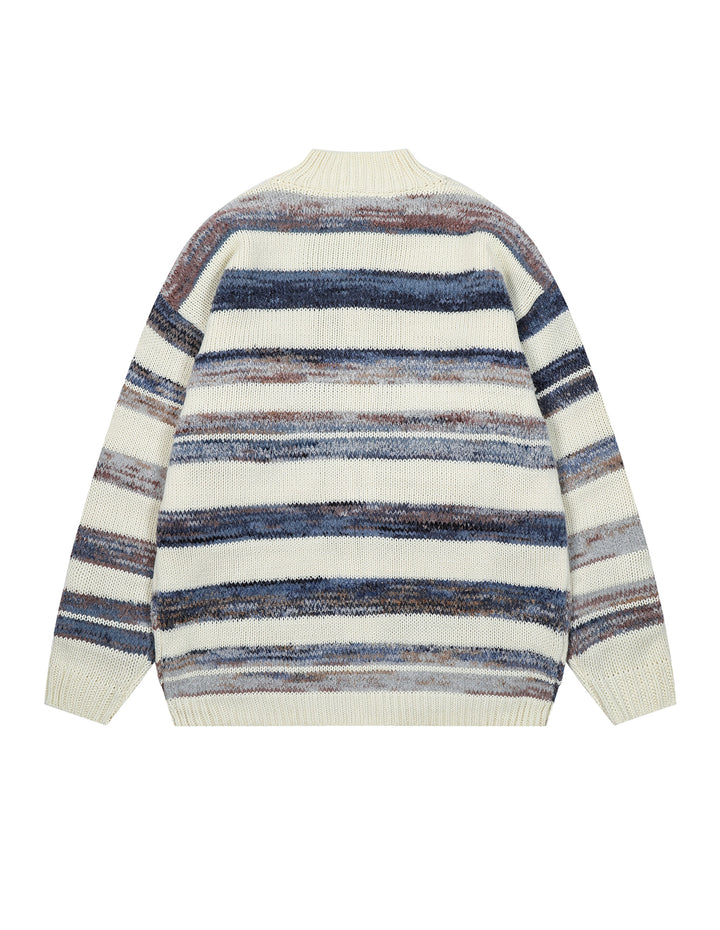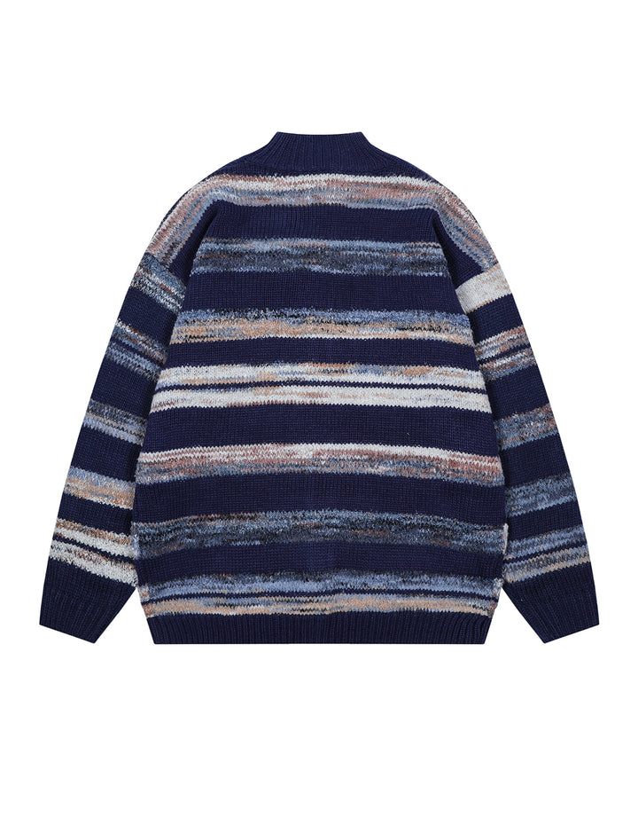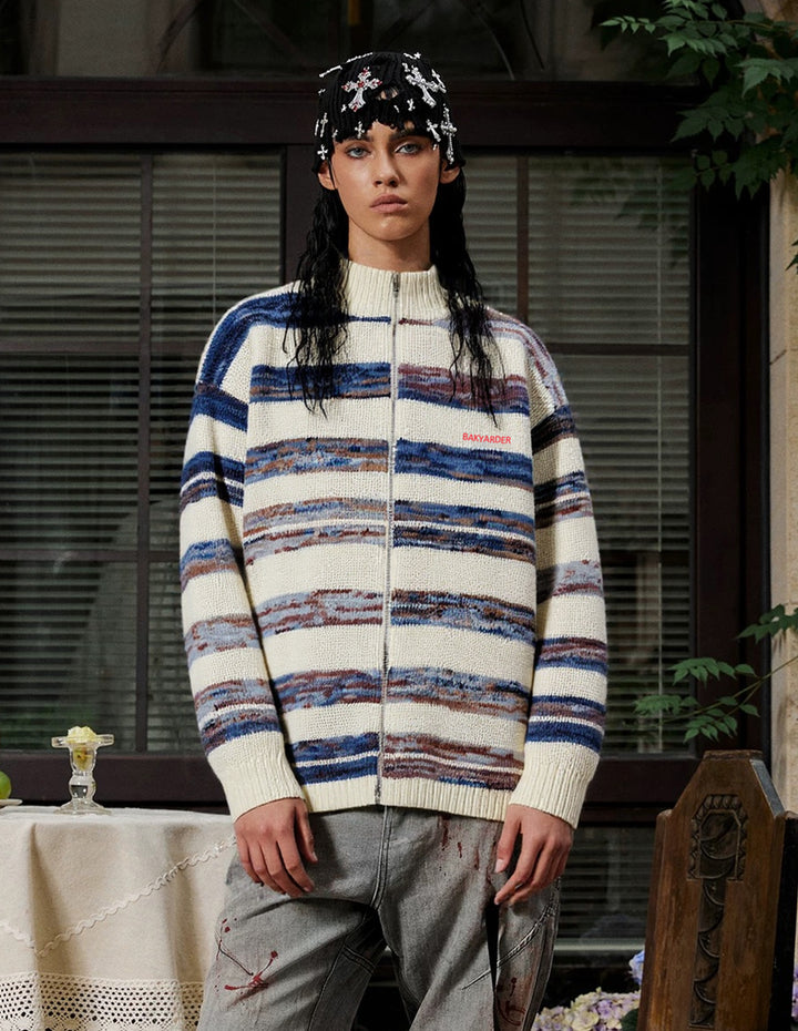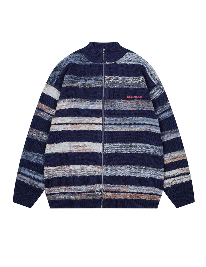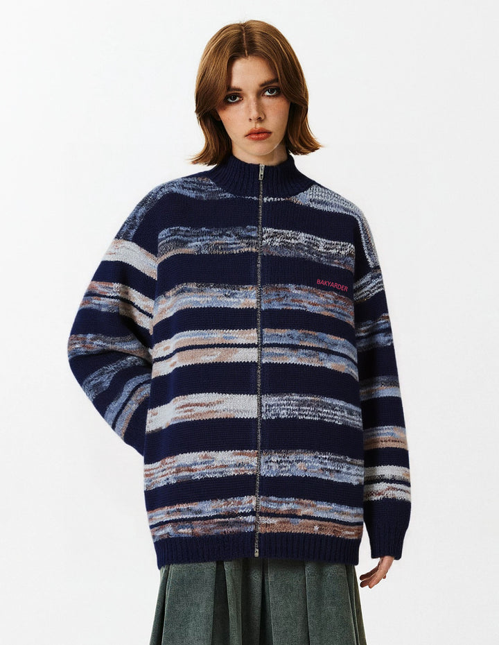 BAKYARDER Striped Zip Up Cardigan Turtleneck Sweaters Unisex Open Front Zipper Oversized Sweater