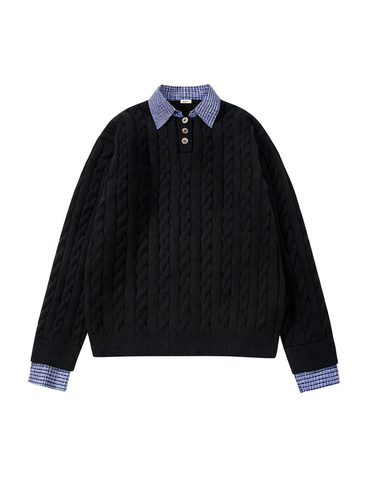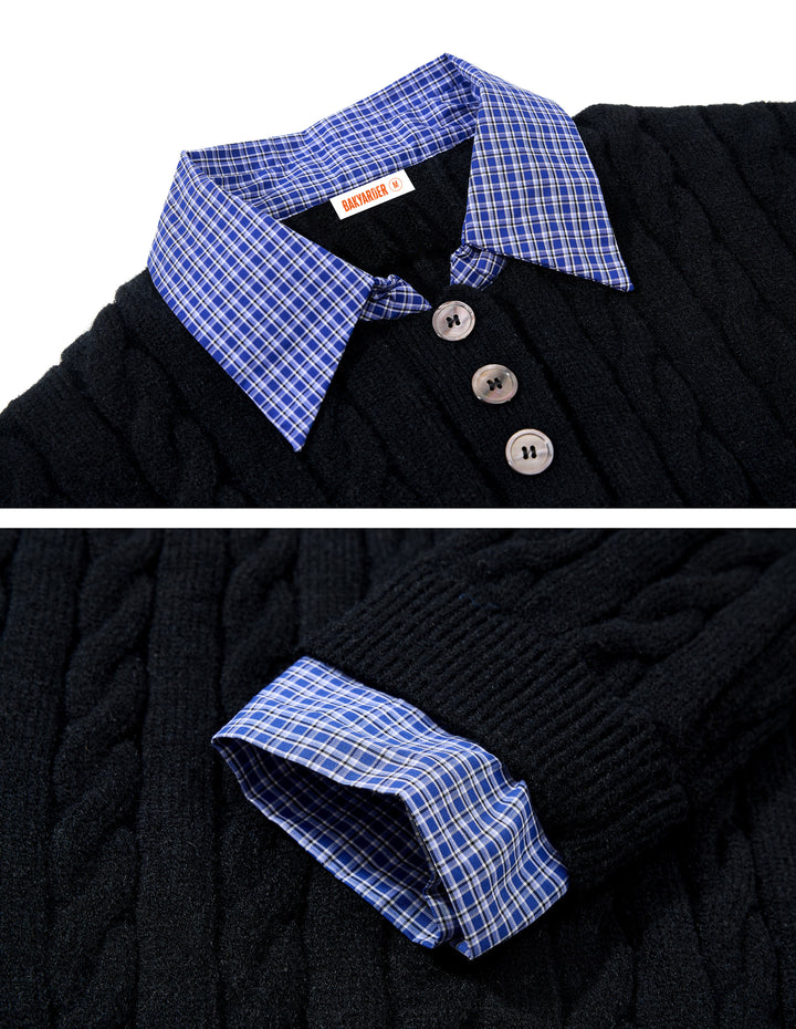 BAKYARDER Vintage Cable Knit Layered Sweater