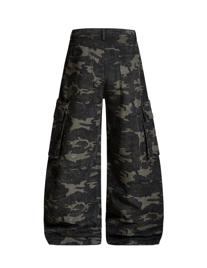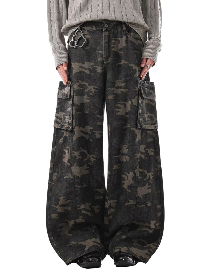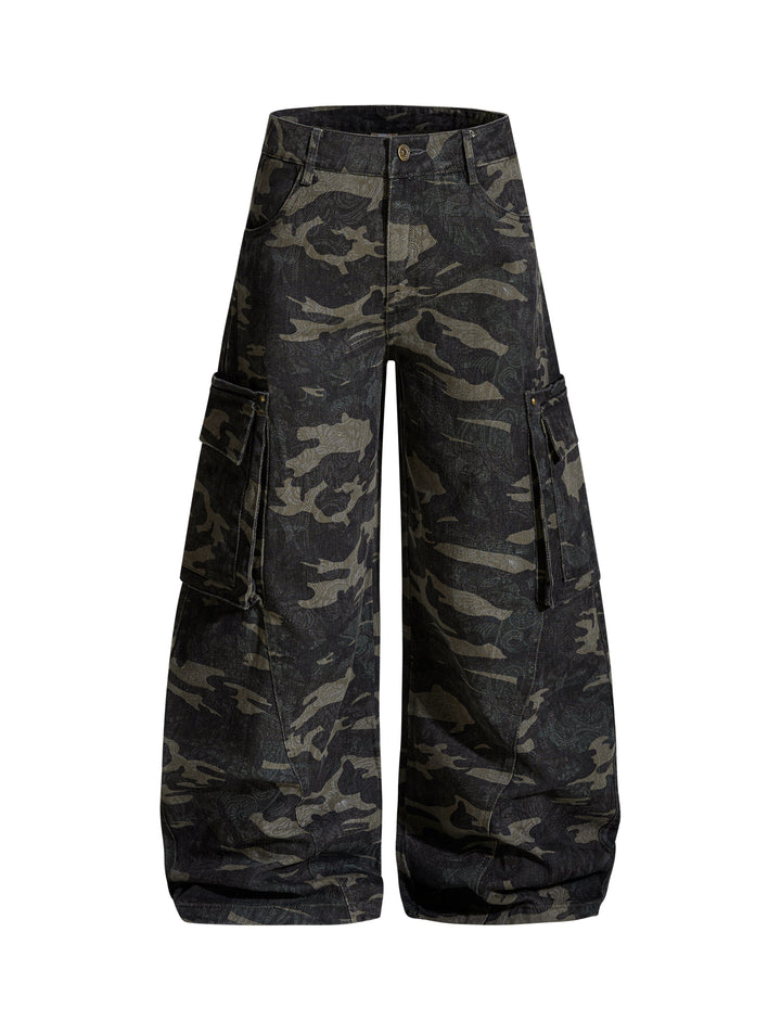 BAKYARDER Vintage Camouflage Multi-Pocket Barrel Pants