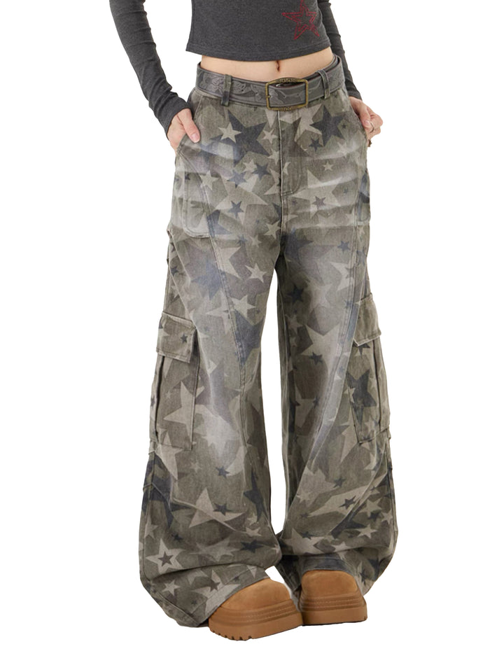 BAKYARDER Vintage Camouflage Utility Star Barrel Jeans