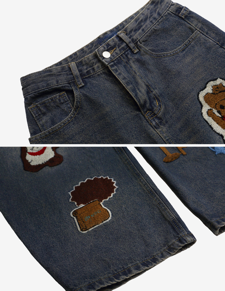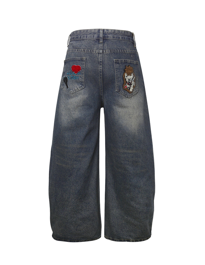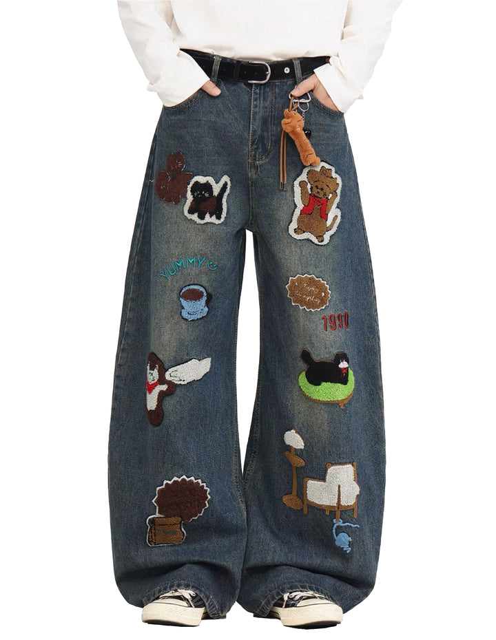 BAKYARDER Vintage Cartoon Embroidered Wide-Leg Jeans