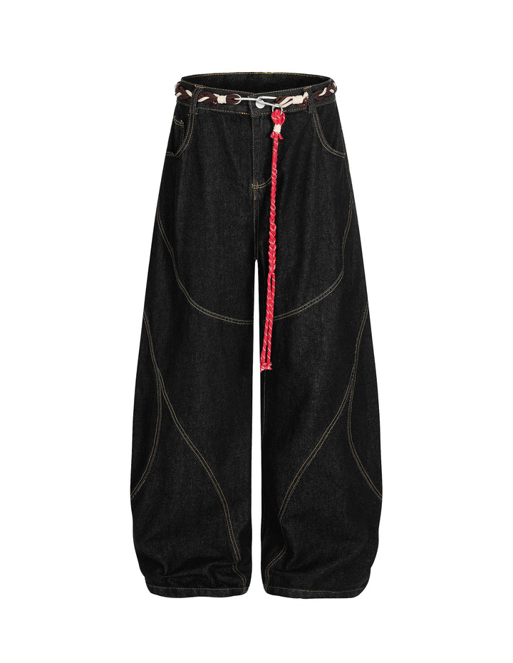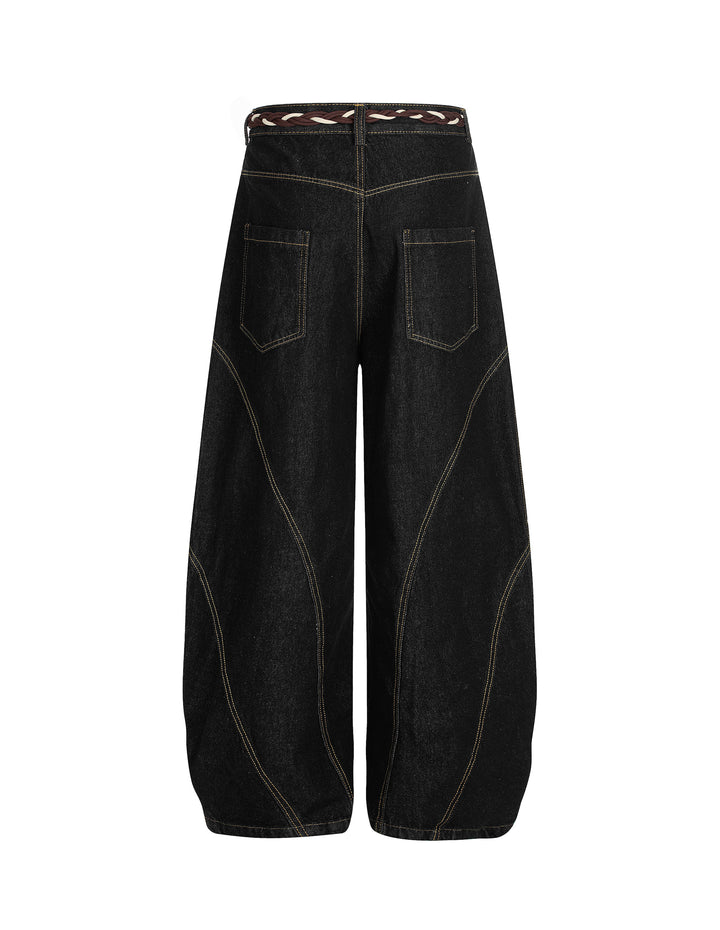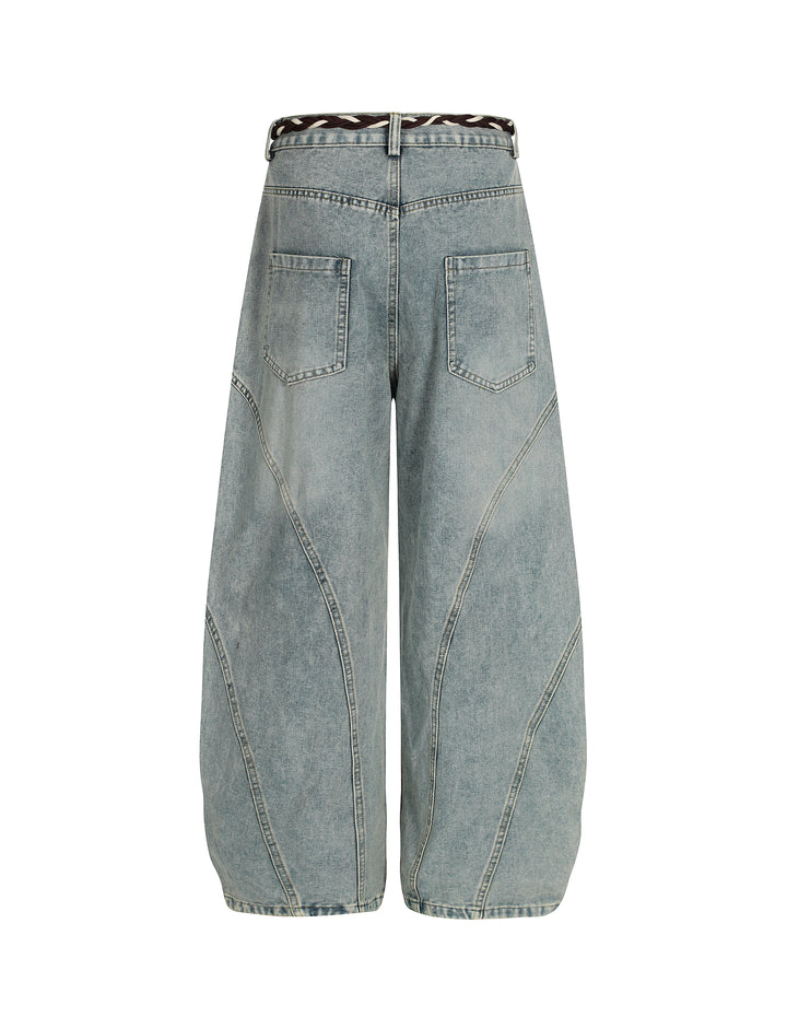 BAKYARDER Vintage Chain-Paneled Deconstructed Barrel Jeans
