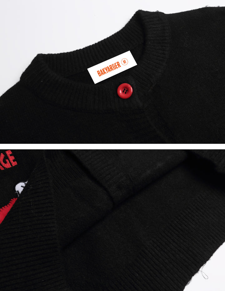 BAKYARDER Vintage Christmas Cartoon Puppy Embroidered Cardigan