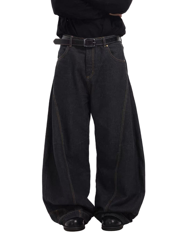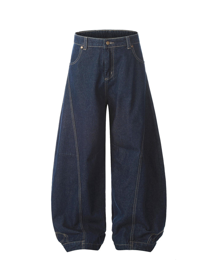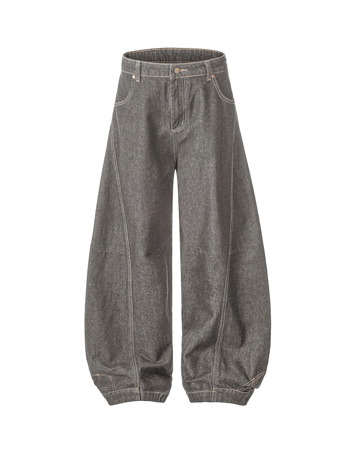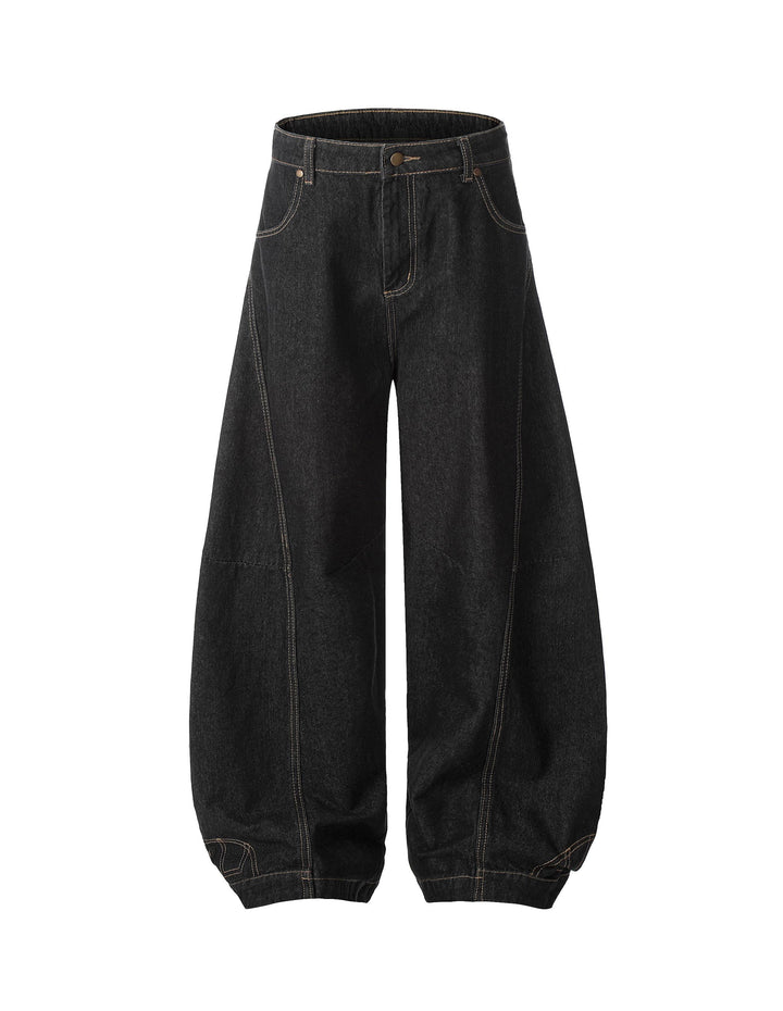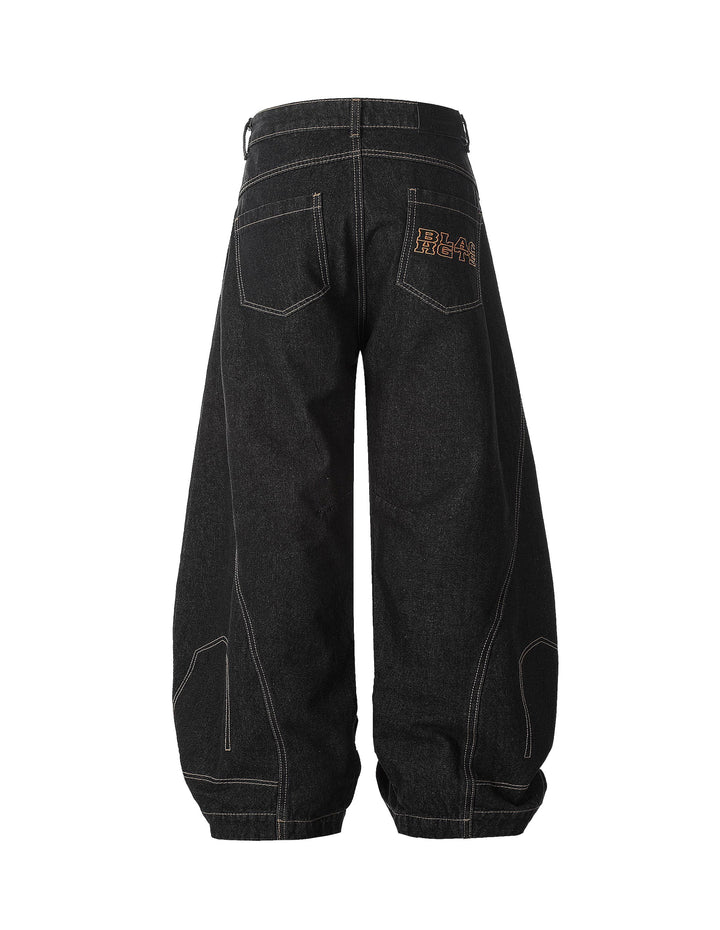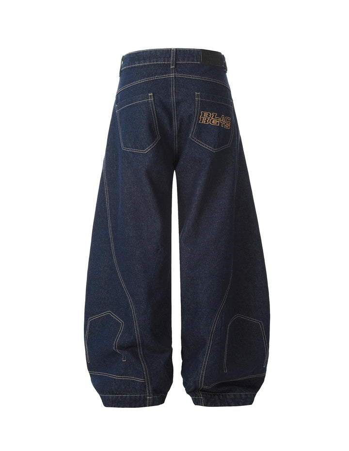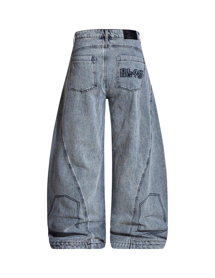 BAKYARDER Vintage Deconstructed Diagonal-Line Barrel Jeans