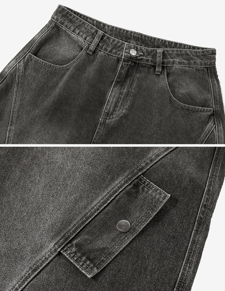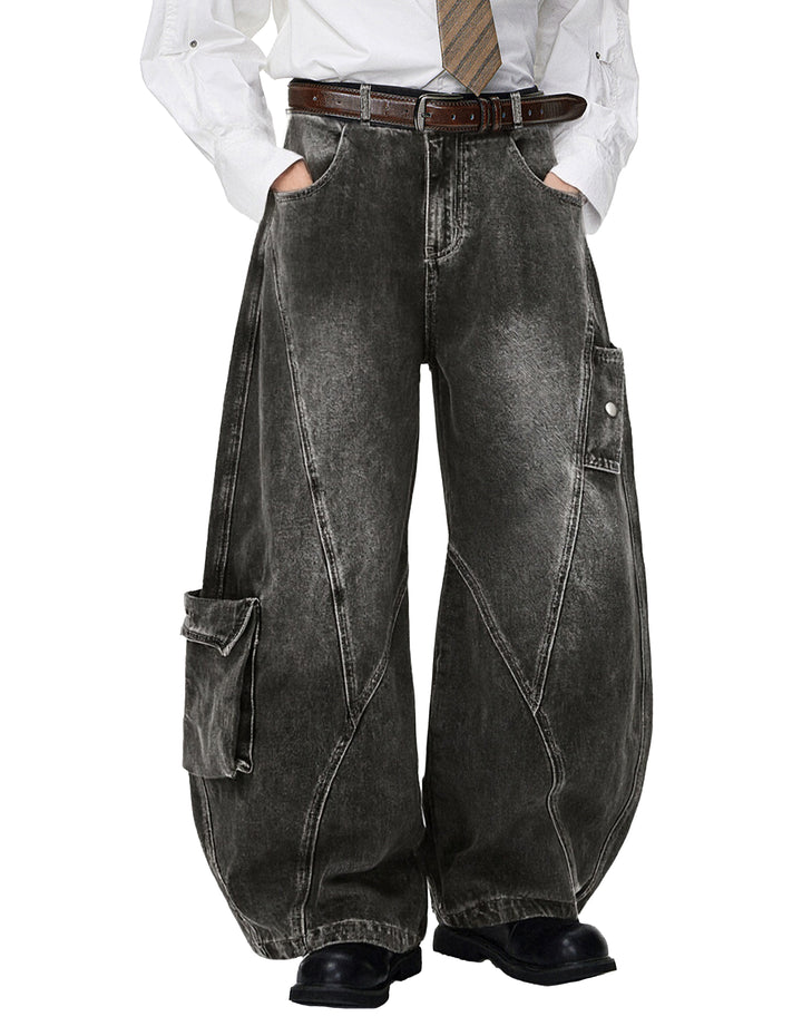 BAKYARDER Vintage Deconstructed Multi-Pocket Barrel-Leg Jeans