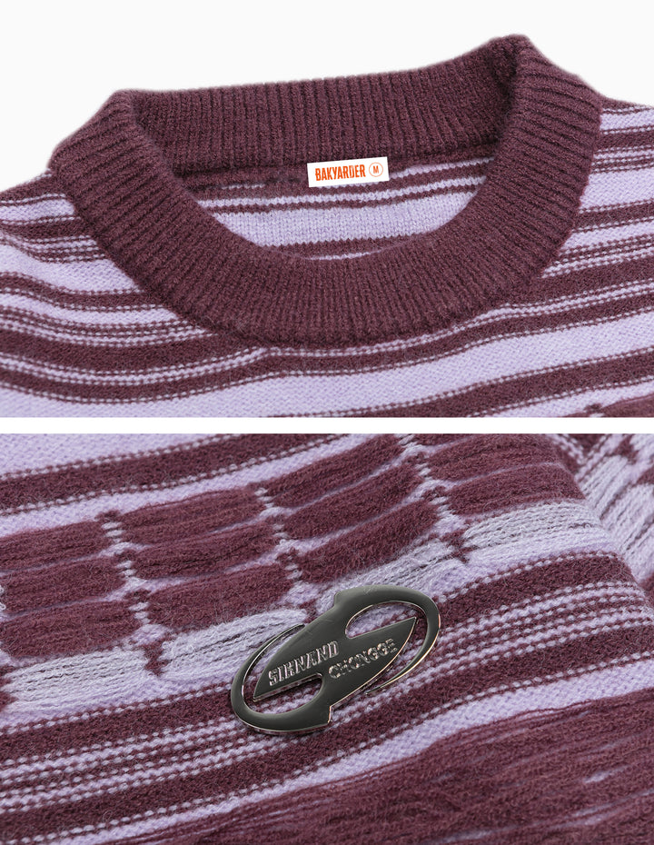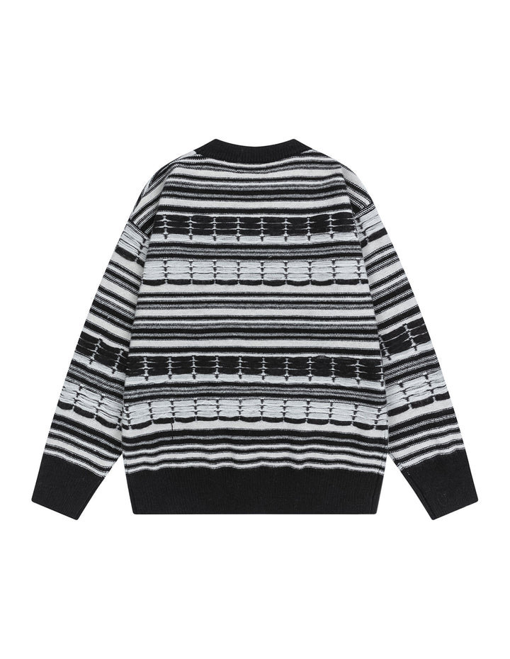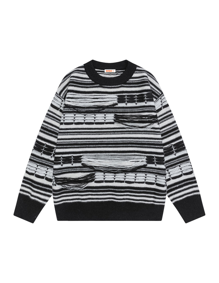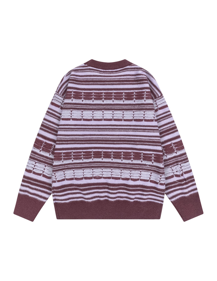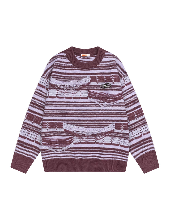 BAKYARDER Vintage Distressed Fringe Irregular Striped Sweater