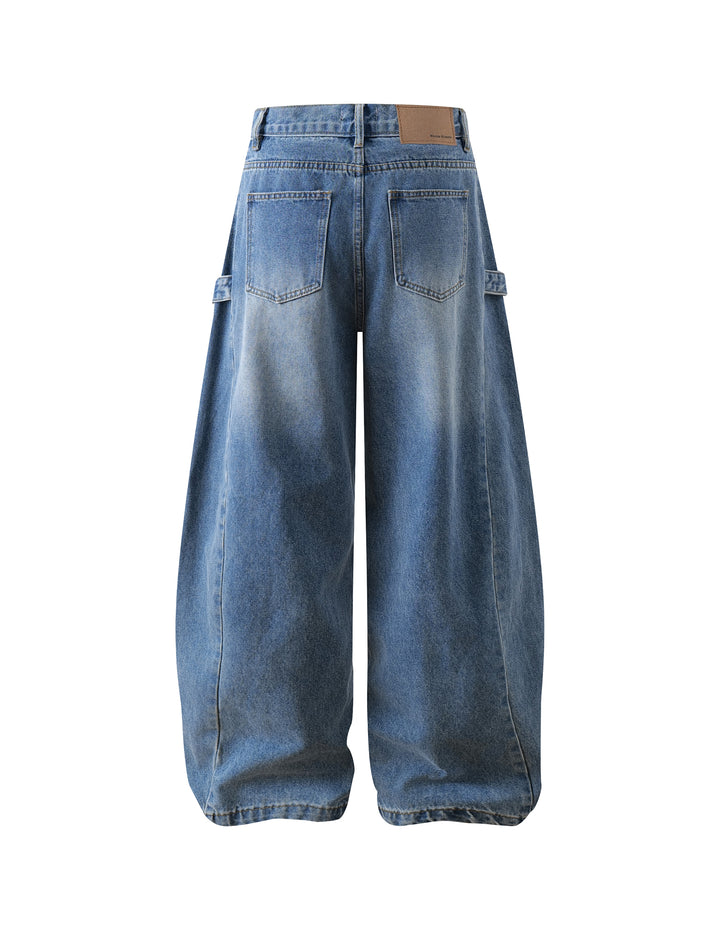 BAKYARDER Vintage Distressed Washed Barrel-Leg Jeans