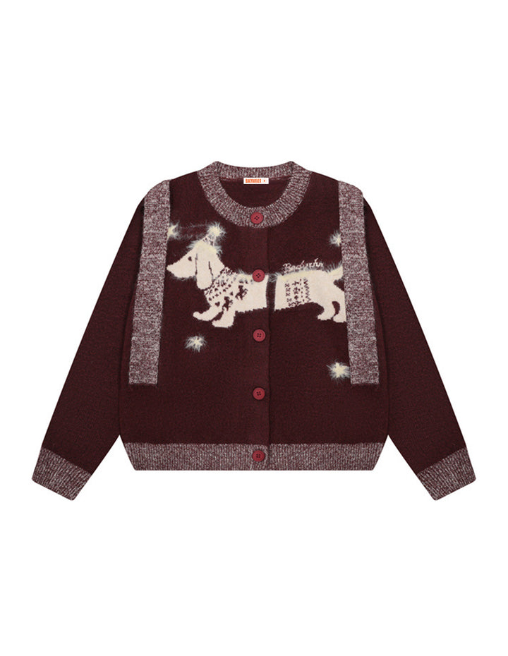 BAKYARDER Vintage Dog Jacquard Cardigan Sweater