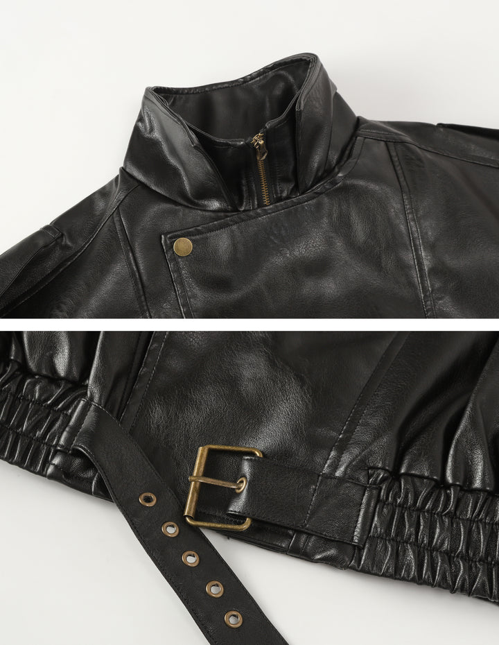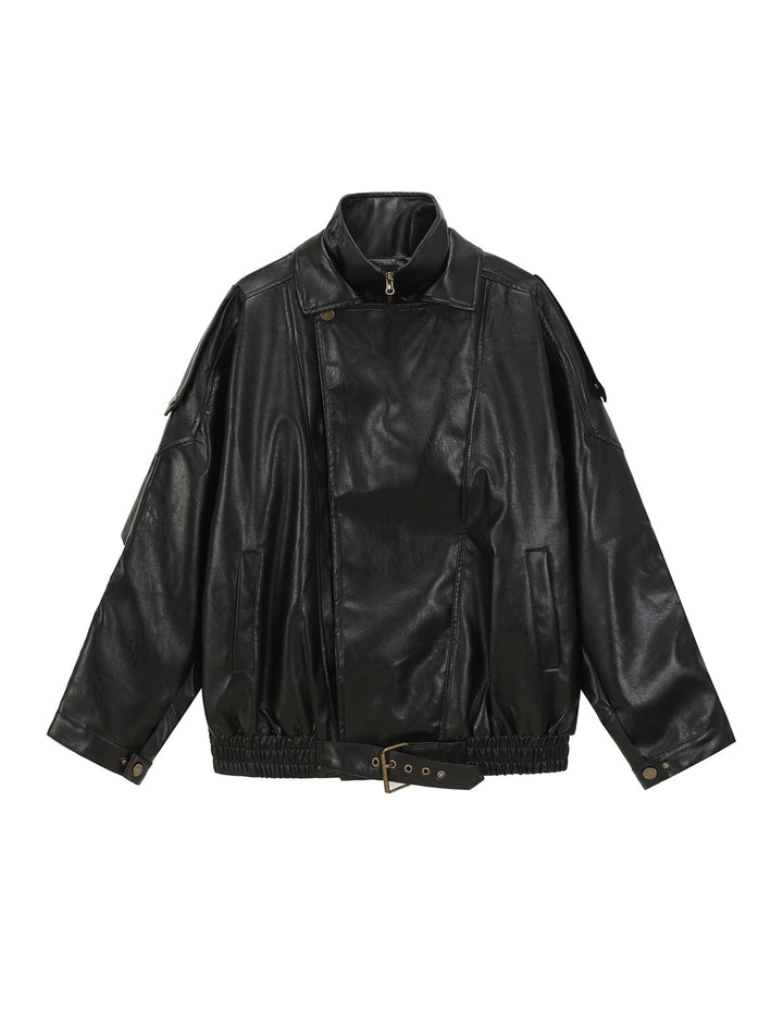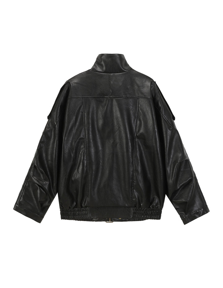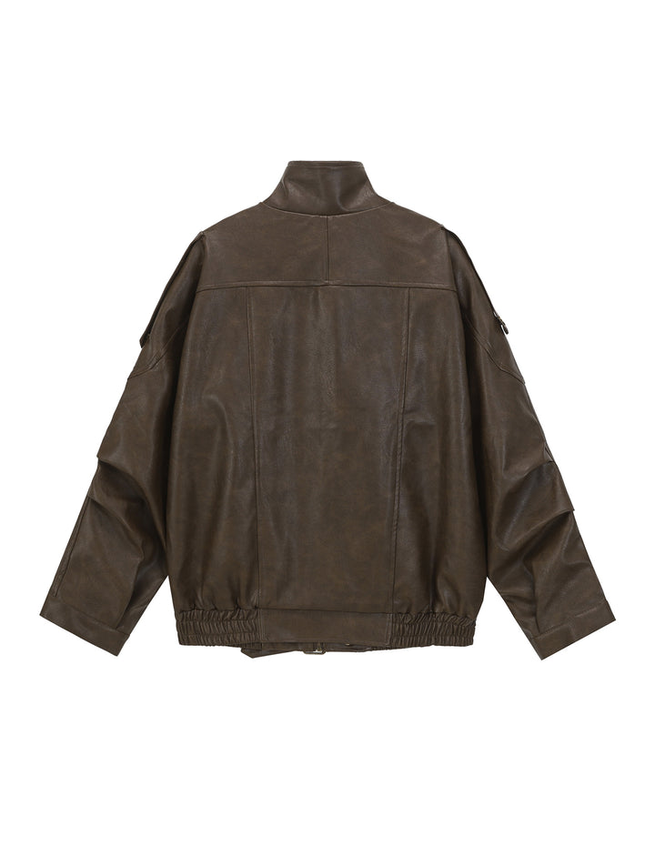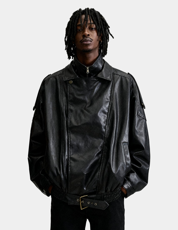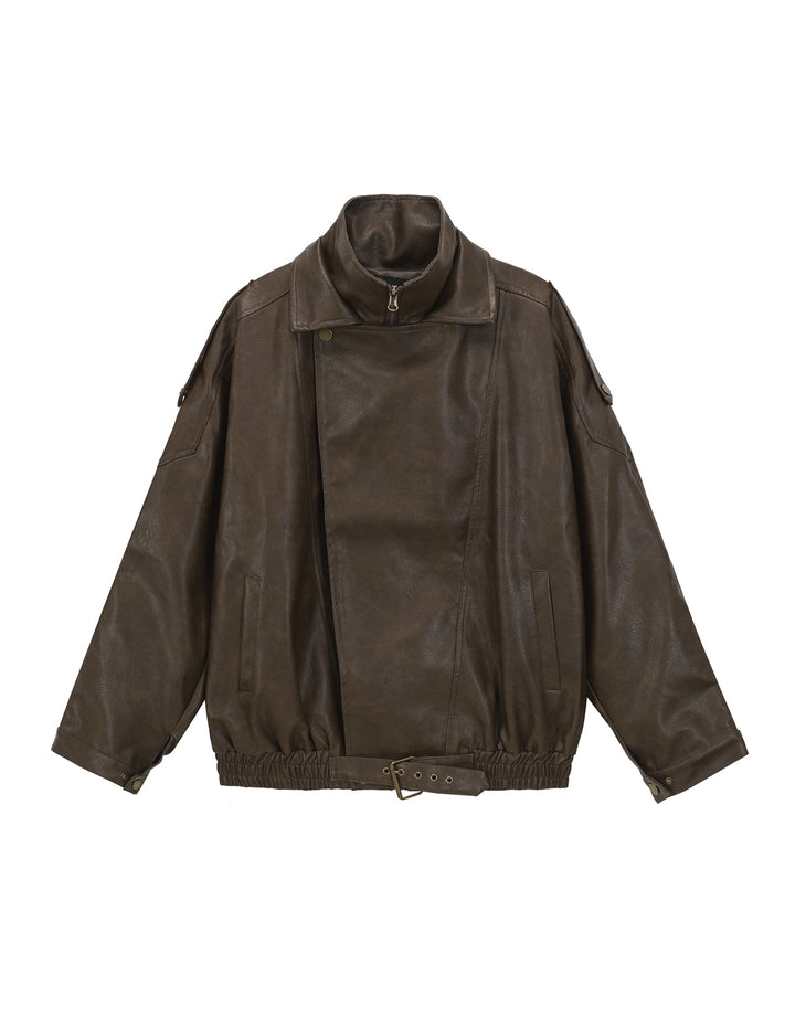 BAKYARDER Vintage Double-Layer Collar Leather Jacket