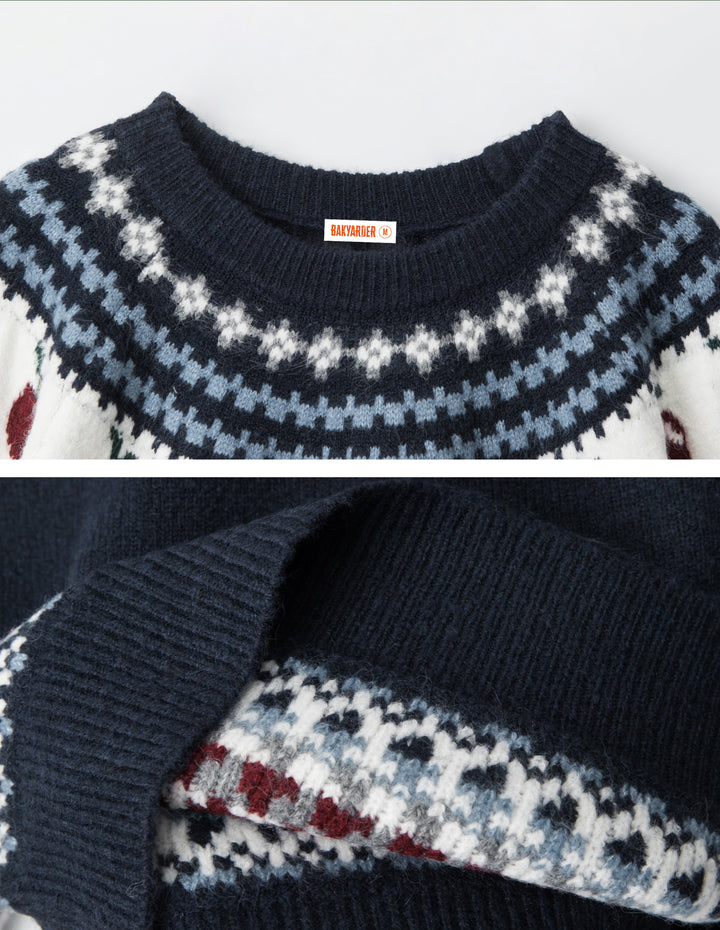 BAKYARDER Vintage Jacquard Crewneck Pullover Sweater