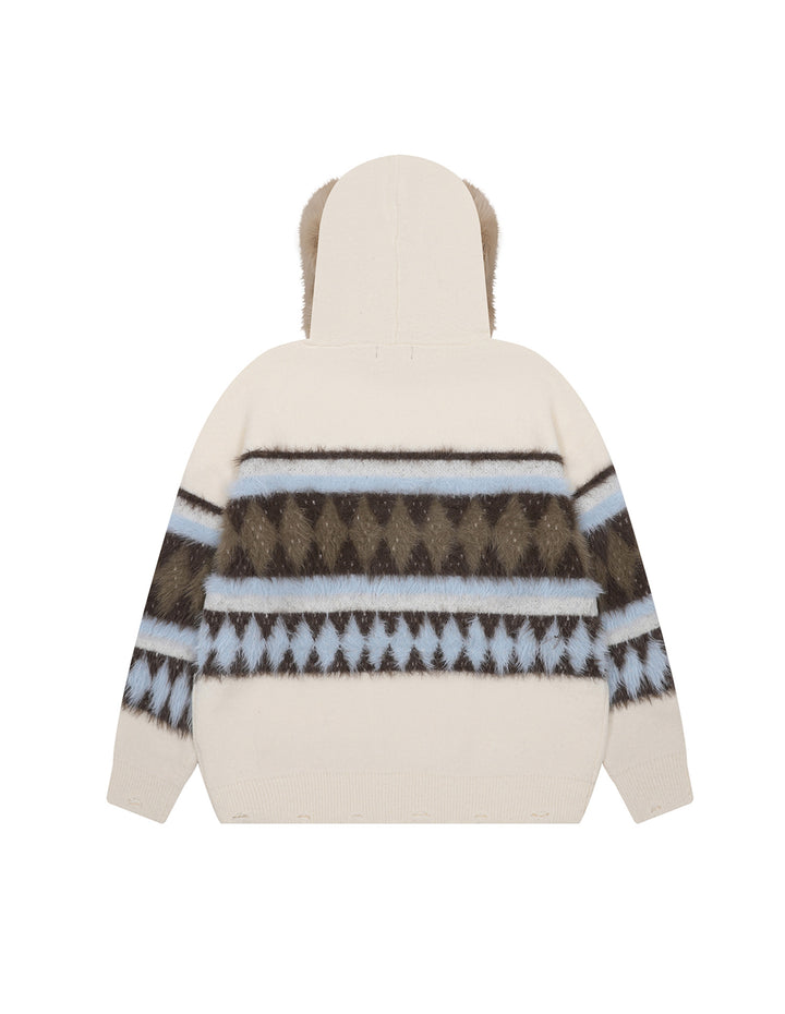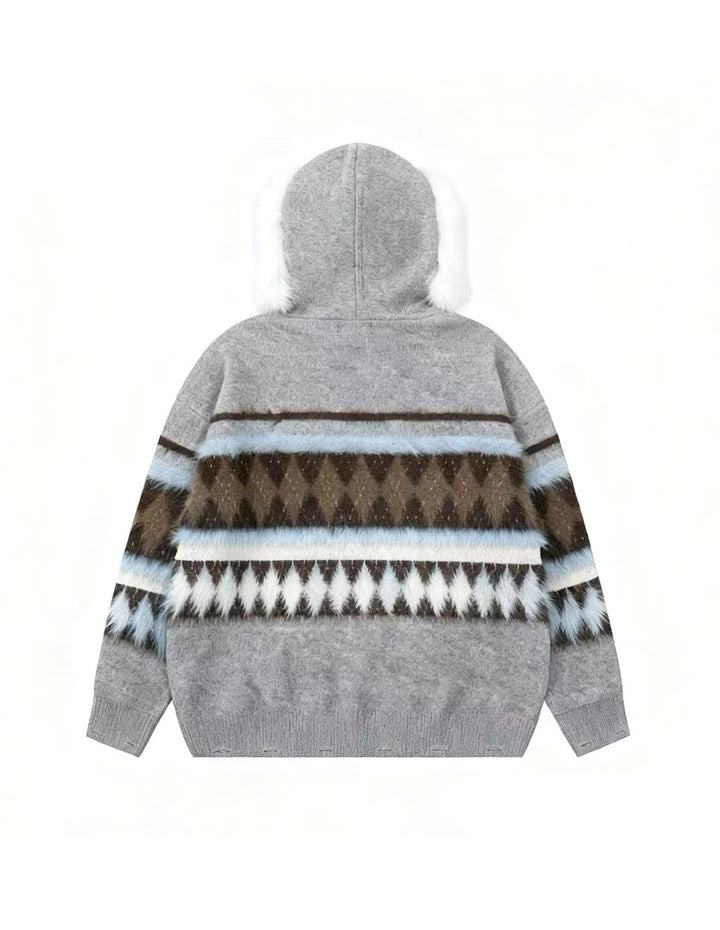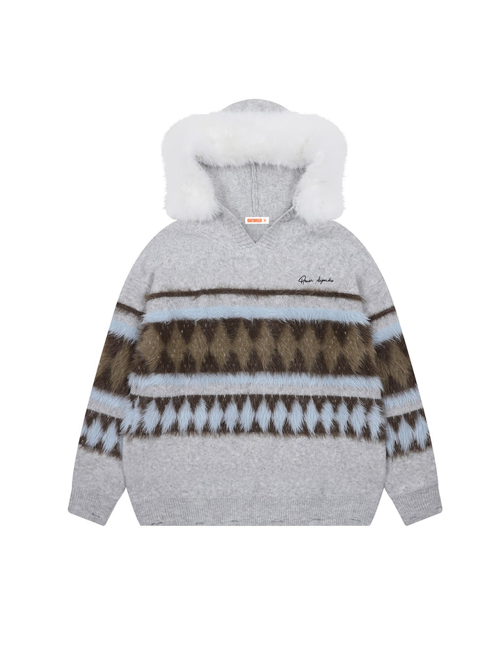 BAKYARDER Vintage Jacquard Hooded Pullover Sweater