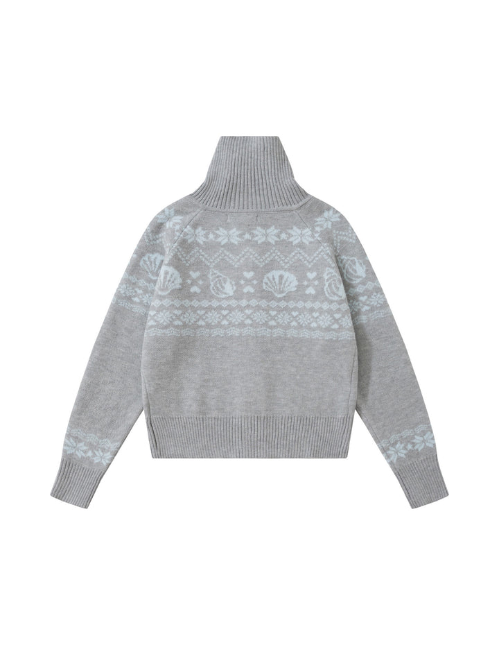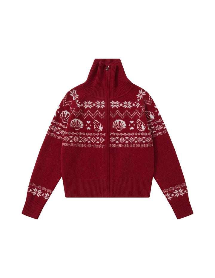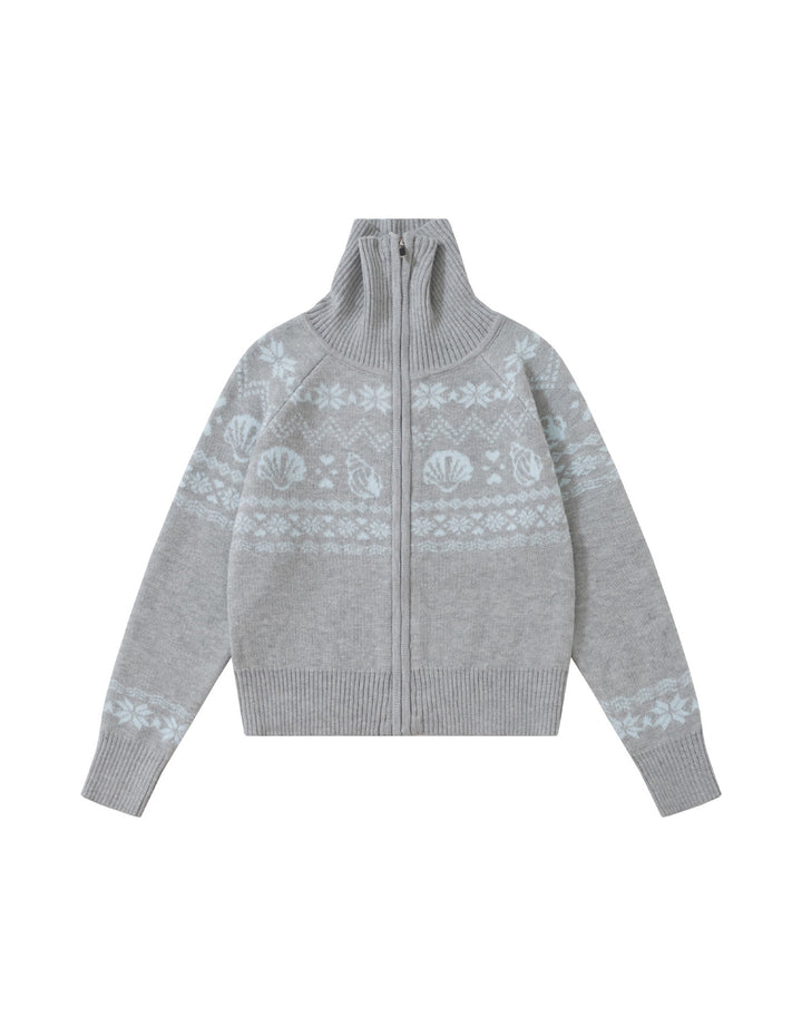 BAKYARDER Vintage Jacquard Turtleneck Zip Cardigan