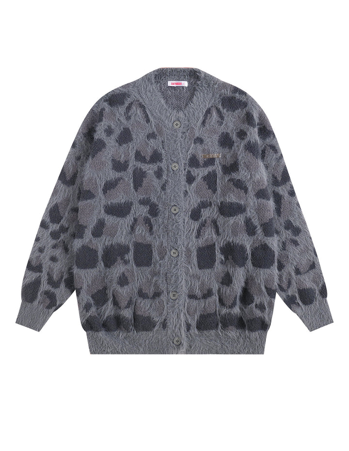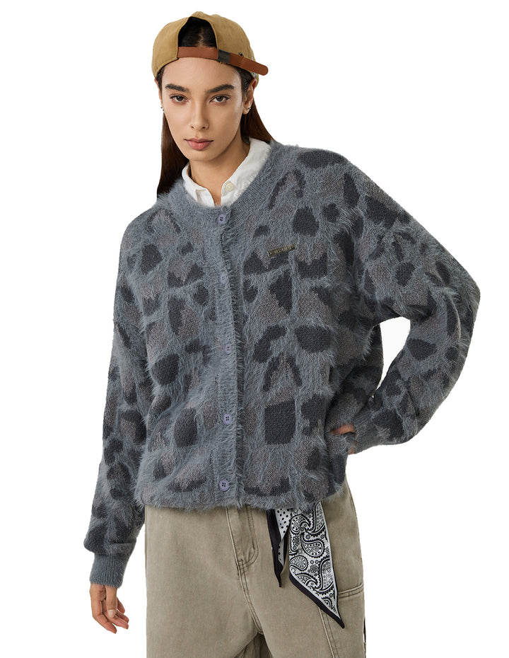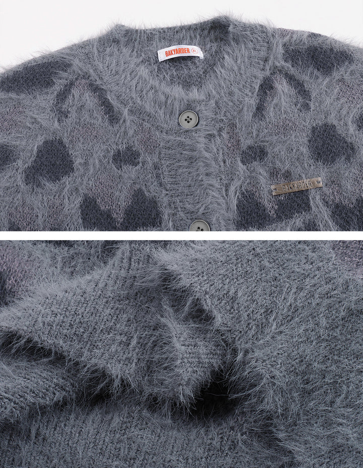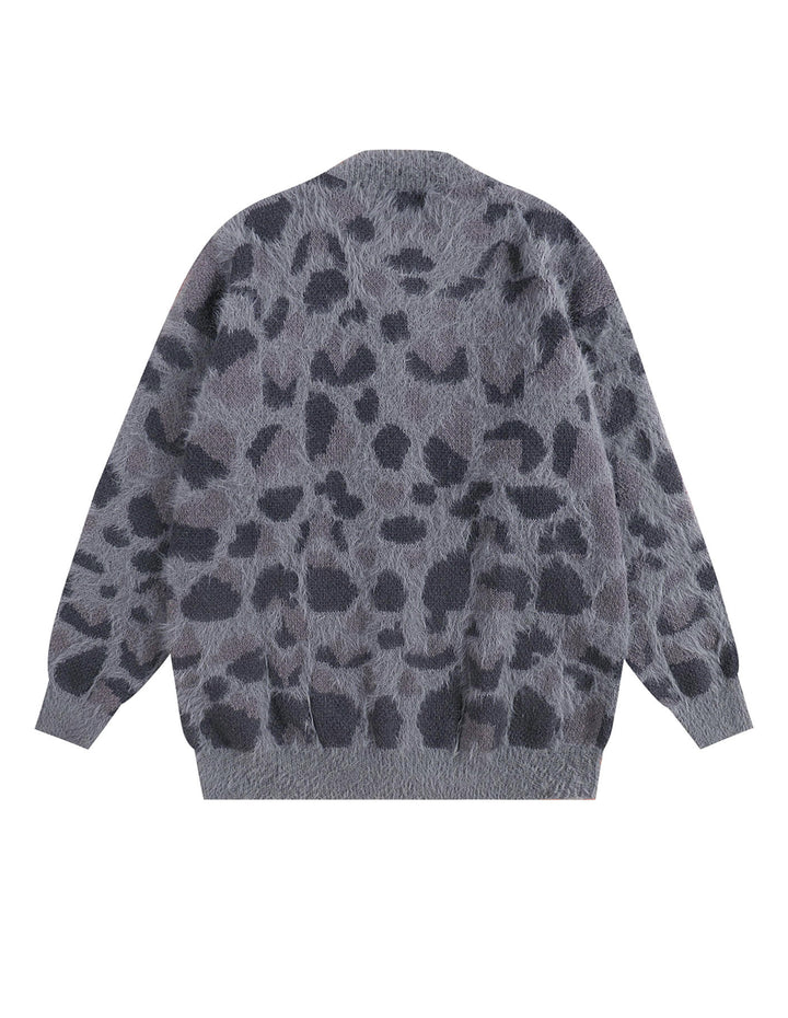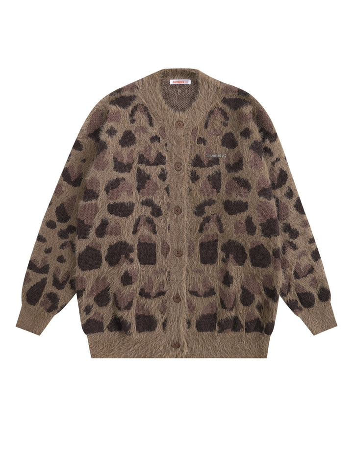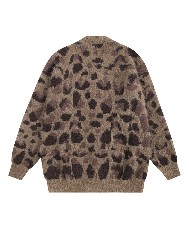BAKYARDER Vintage Leopard Jacquard Cardigan Sweater