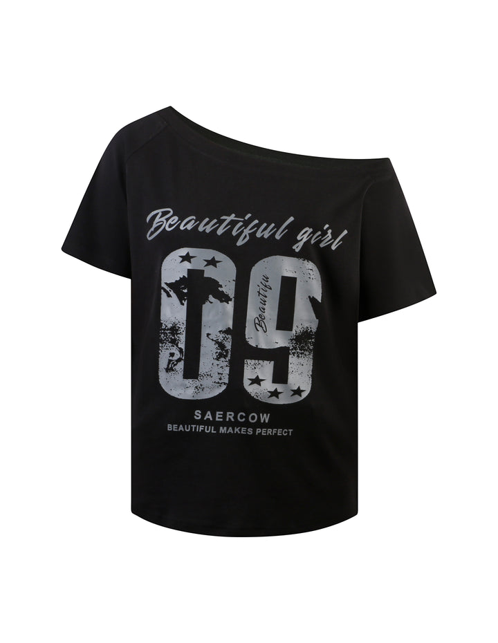 BAKYARDER Vintage Number Print One-Shoulder Tee