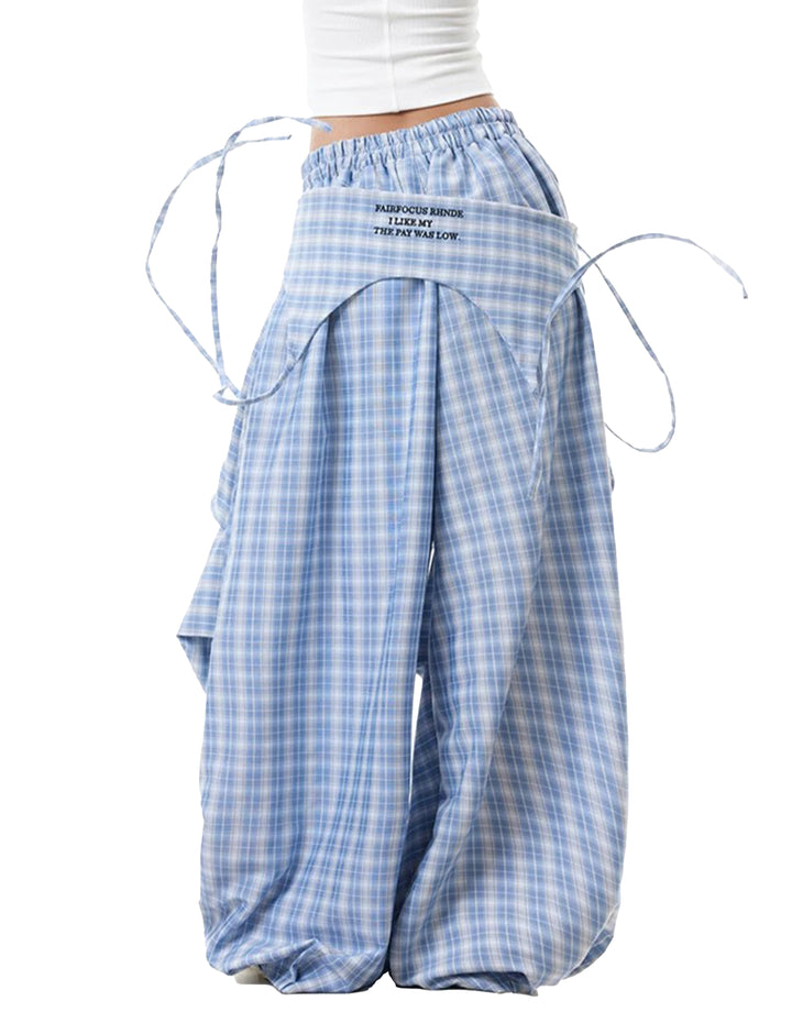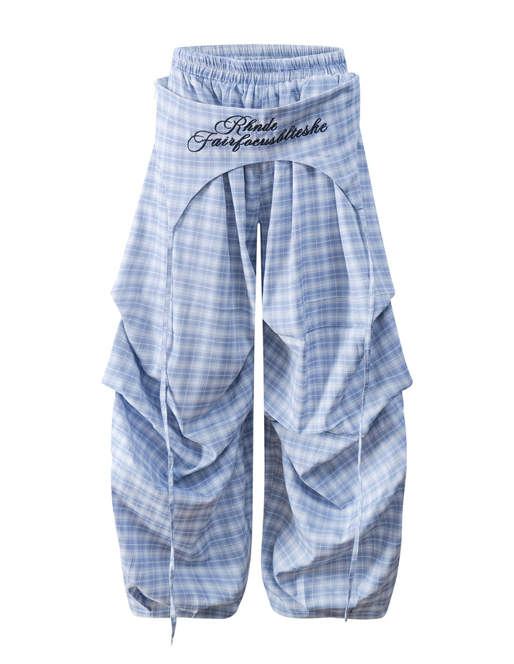 BAKYARDER Vintage Plaid Embroidered Wide-Leg Pants