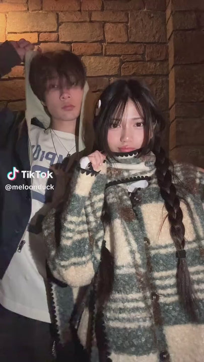 BAKYARDER Vintage Plaid Scarf Coat