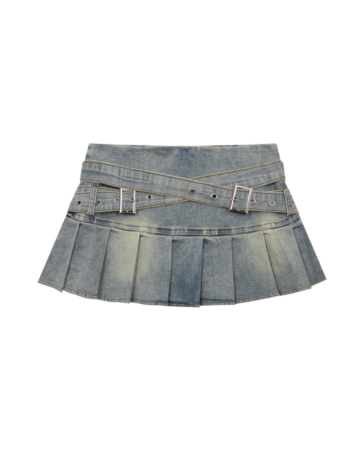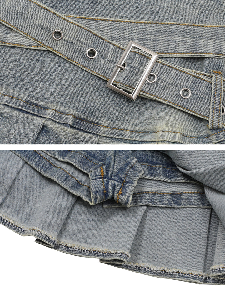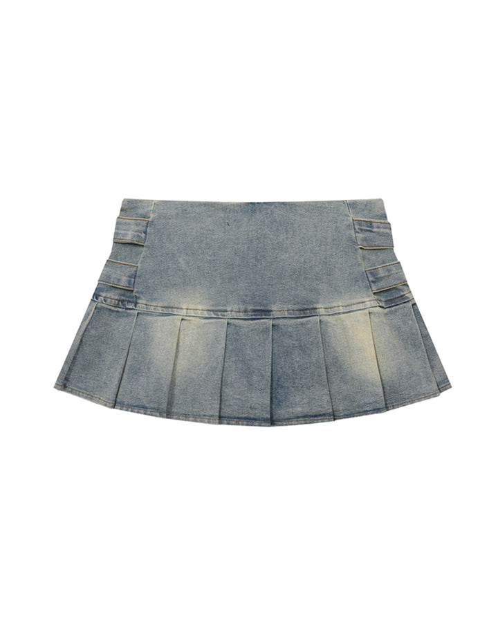 BAKYARDER Vintage Pleated Denim Mini Skirt