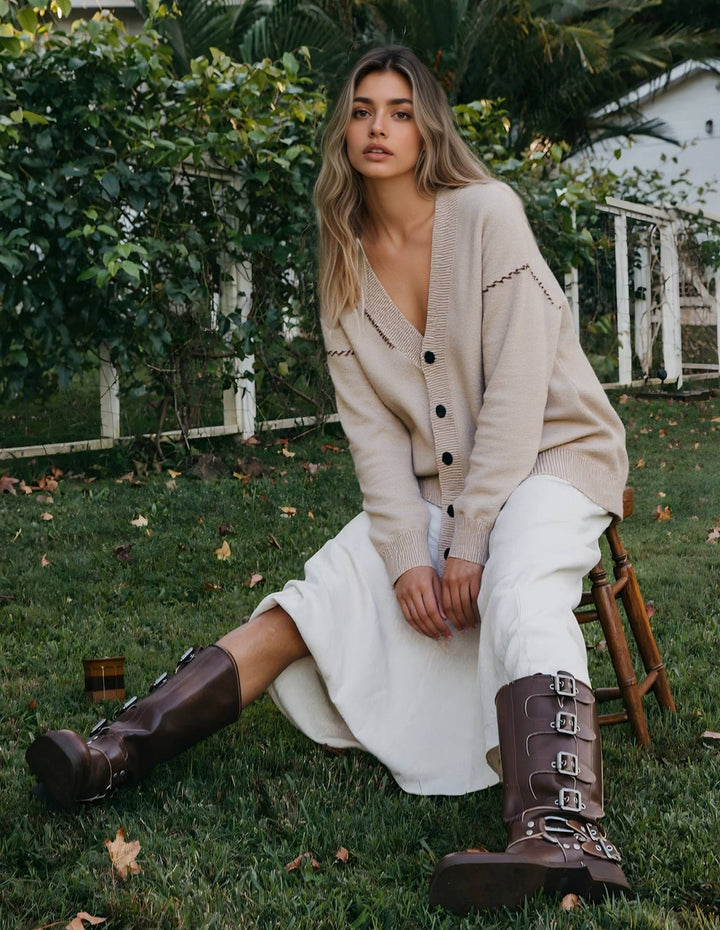 BAKYARDER Vintage Preppy Style Simple Casual Cardigan