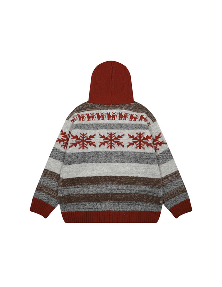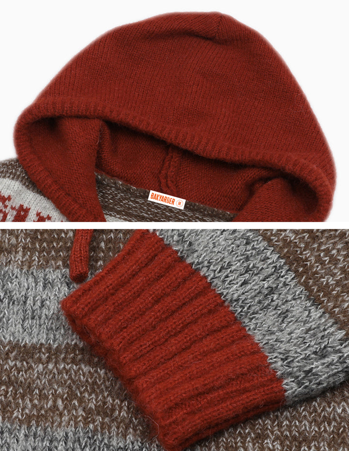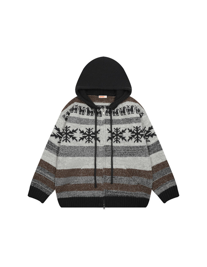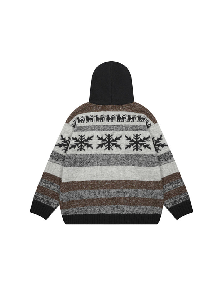 BAKYARDER Vintage Snowflake Jacquard Hooded Cardigan Sweater