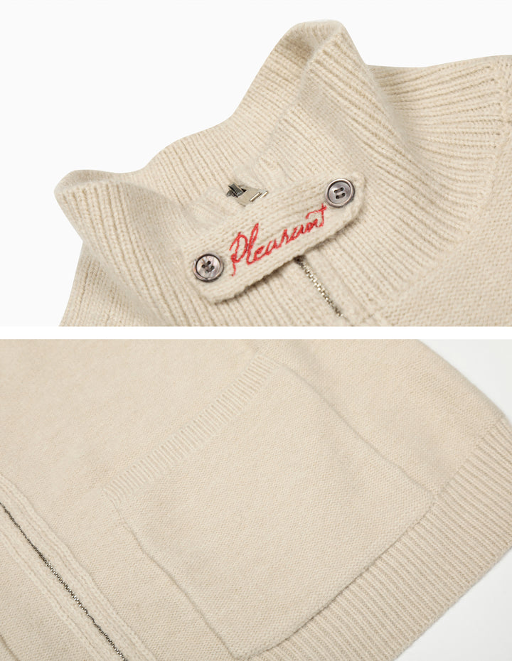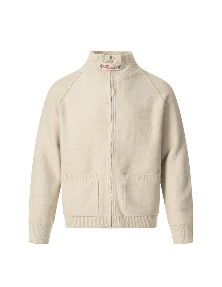 BAKYARDER Vintage Stand Collar Casual Zip-Up Knit Sweater