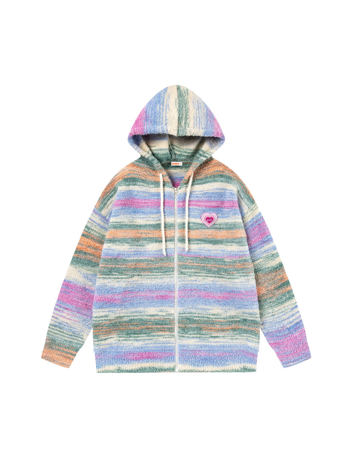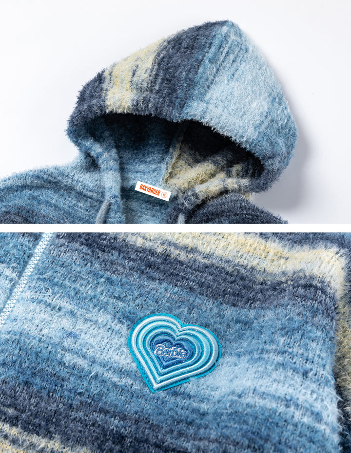BAKYARDER Vintage Striped Hoodie Zip-Up Cardigan Sweater