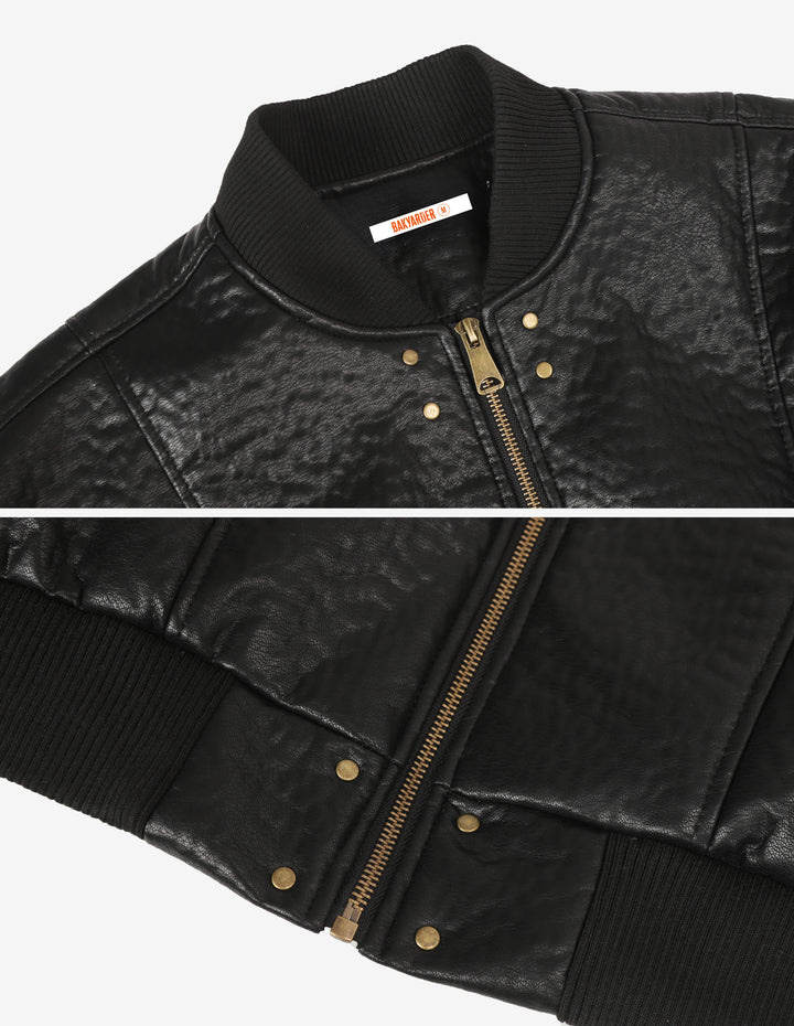 BAKYARDER Vintage Textured Baseball Biker Leather Jacket