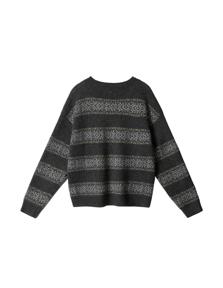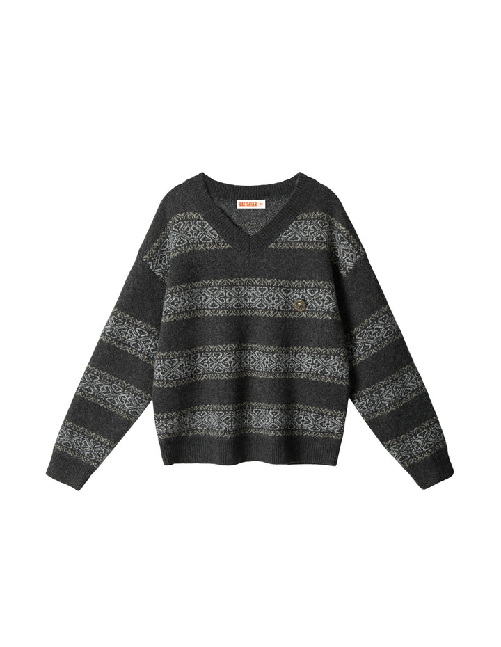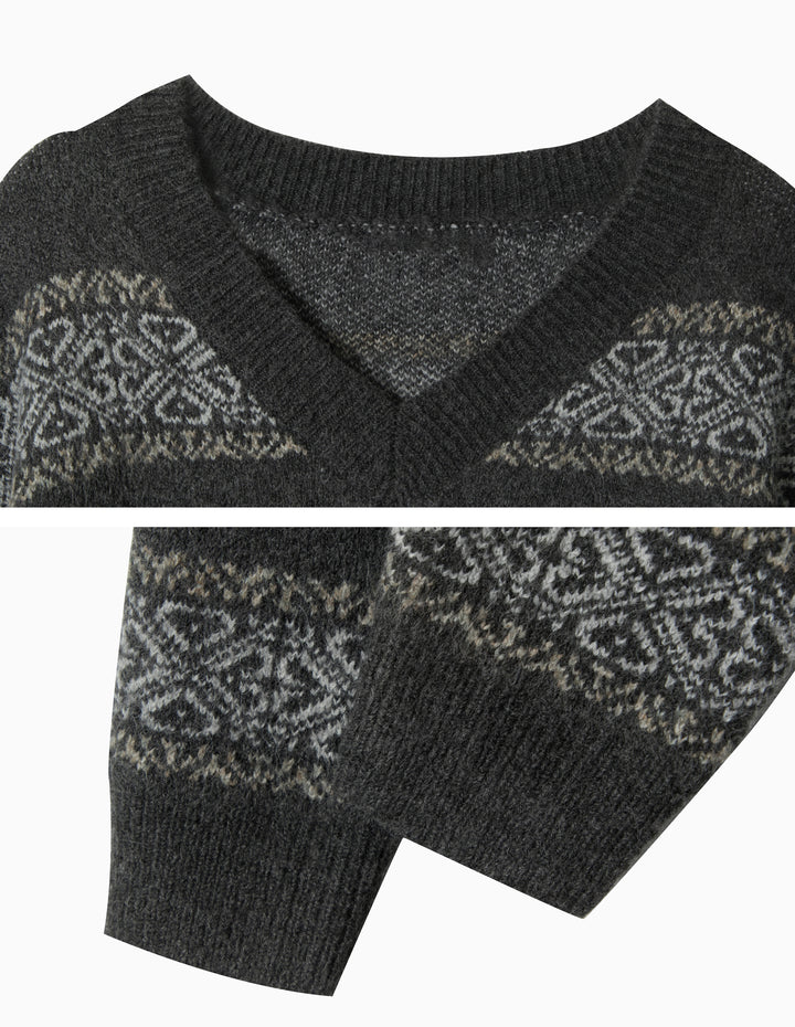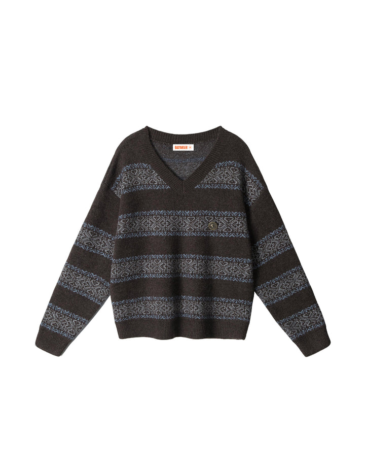 BAKYARDER Vintage V-Neck Jacquard Pullover Sweater