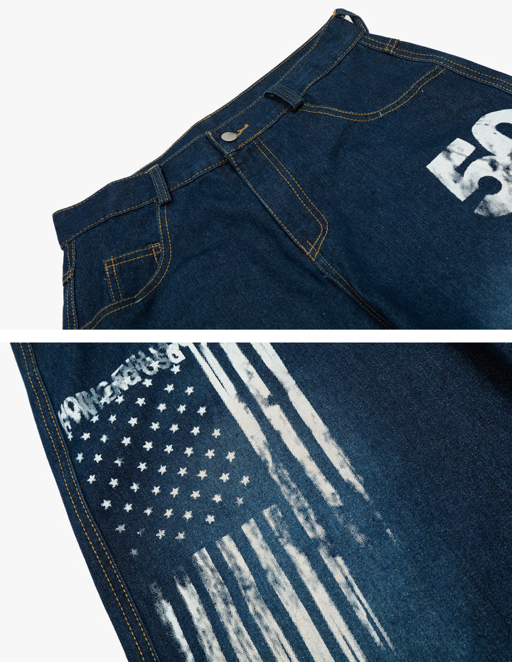 BAKYARDER Vintage Washed Printed Barrel Jeans