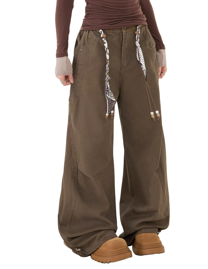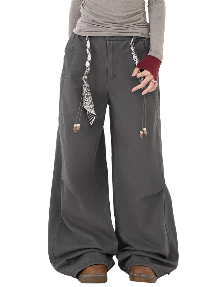 BAKYARDER Vintage Wide-Leg Belted Barrel Utility Pants